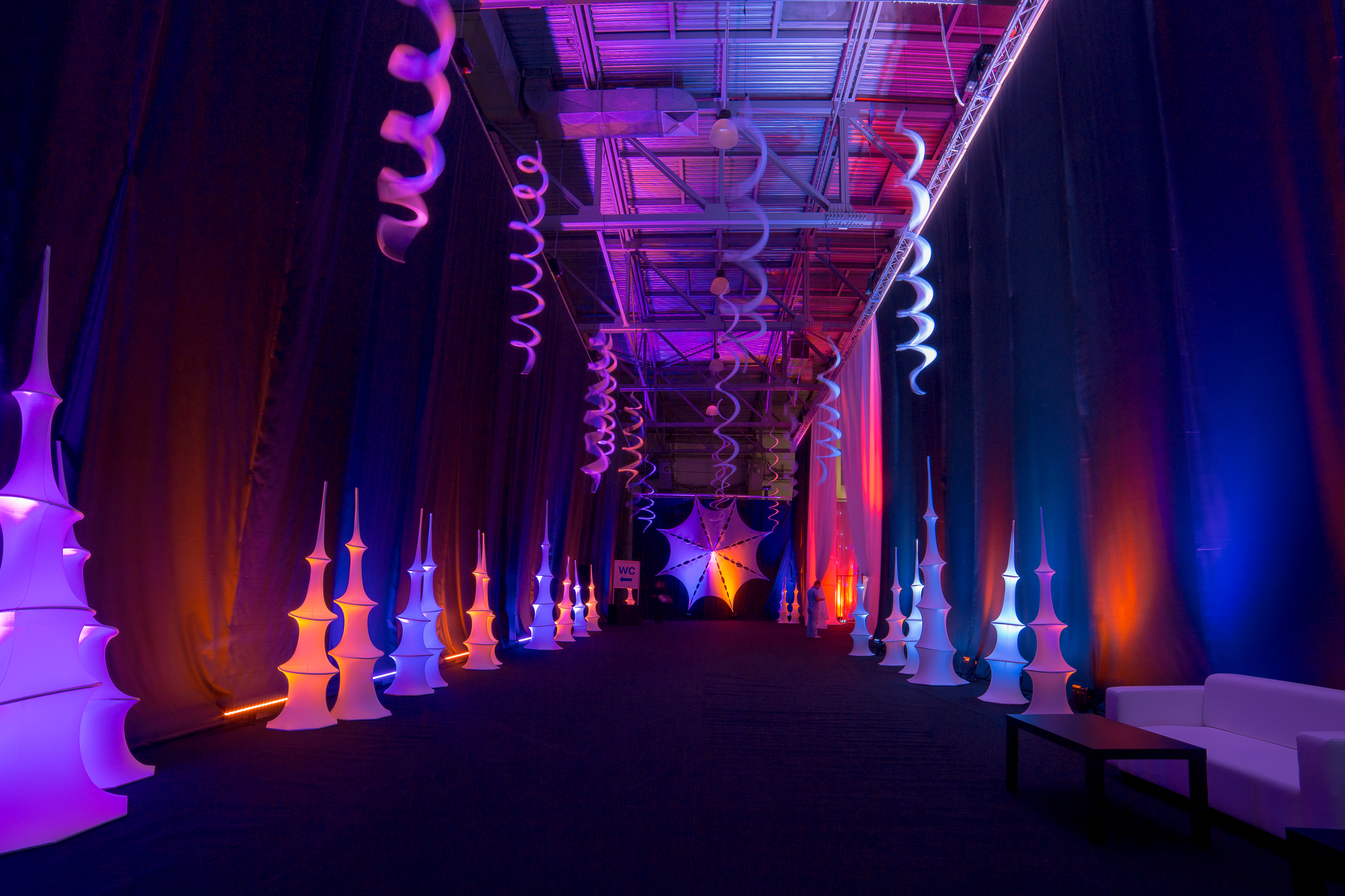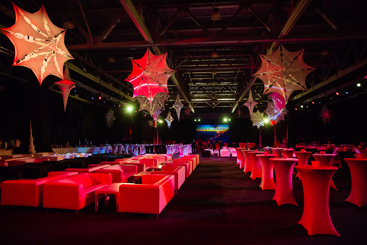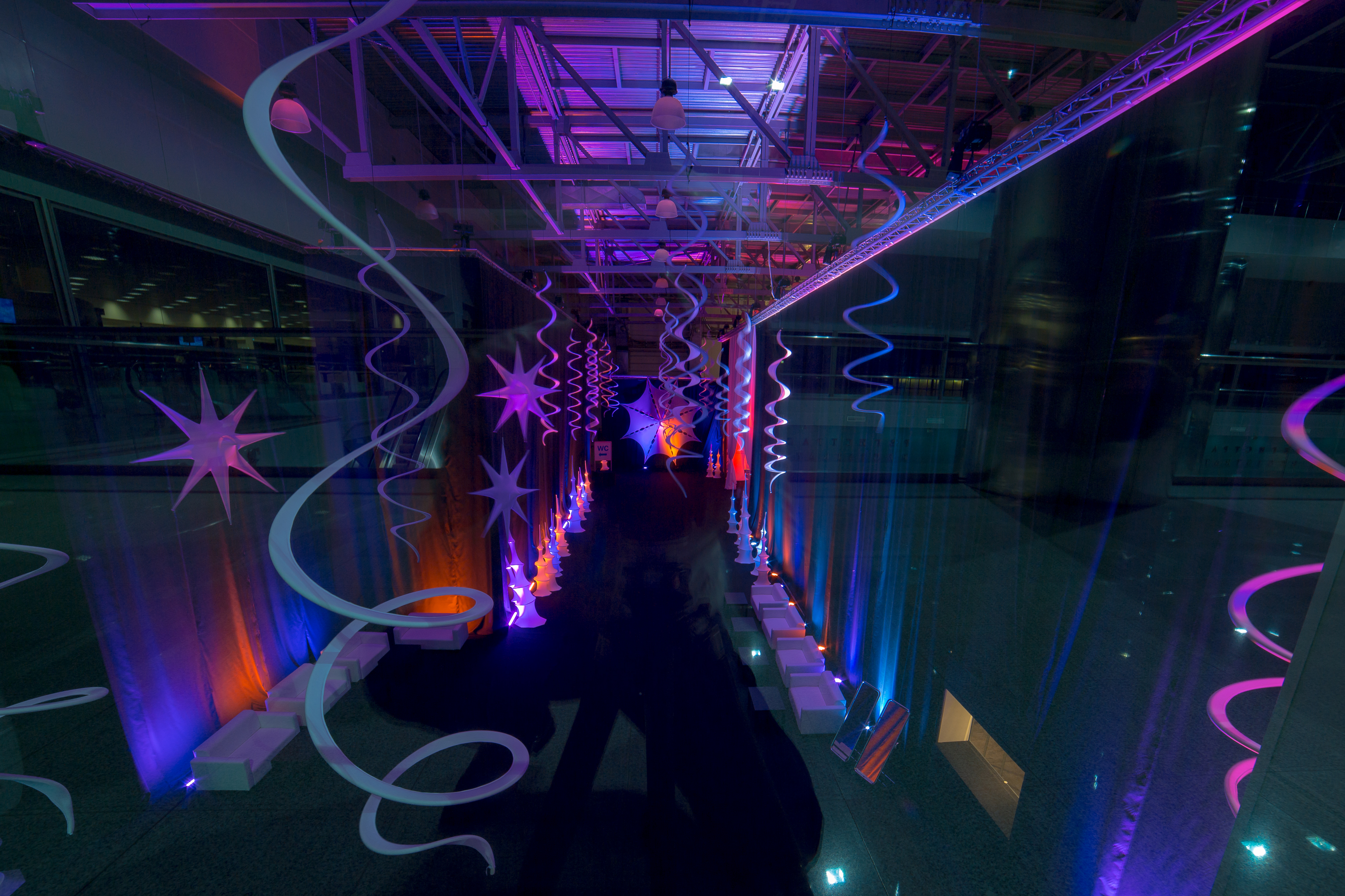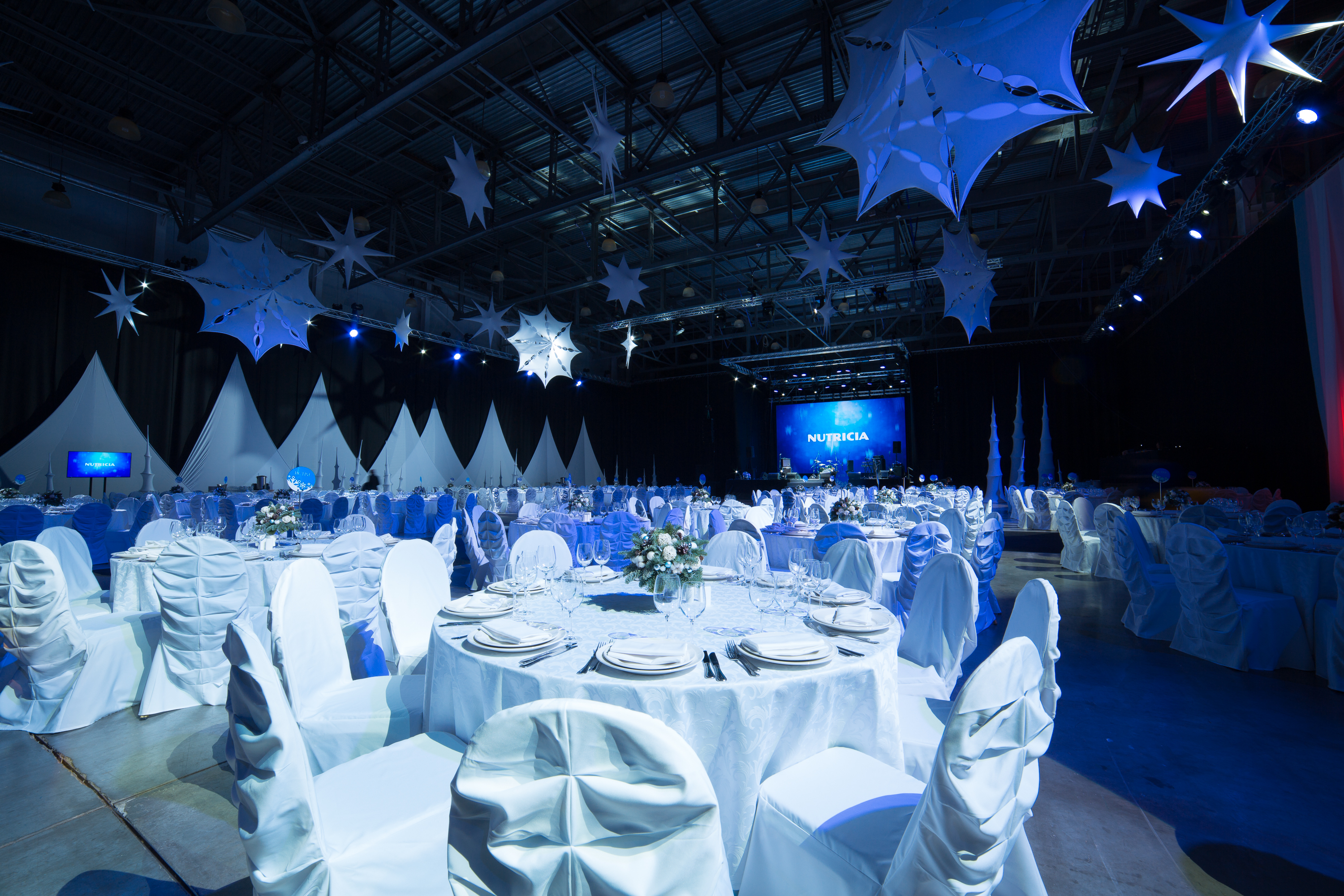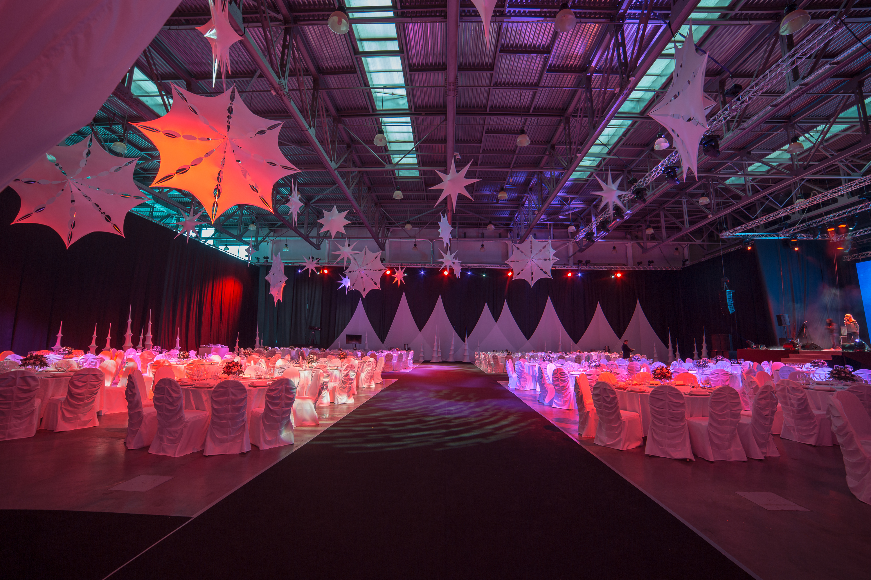 Все банкетные зоны оснащены сценой, танцполом, профессиональным световым и звуковым оборудованием, с возможностью исполнения любого, даже самого сложного технического райдера, гримерными комнатами. Пространство имеет возможность брендирования, размещения сценических конструкций, декораций любого масштаба.