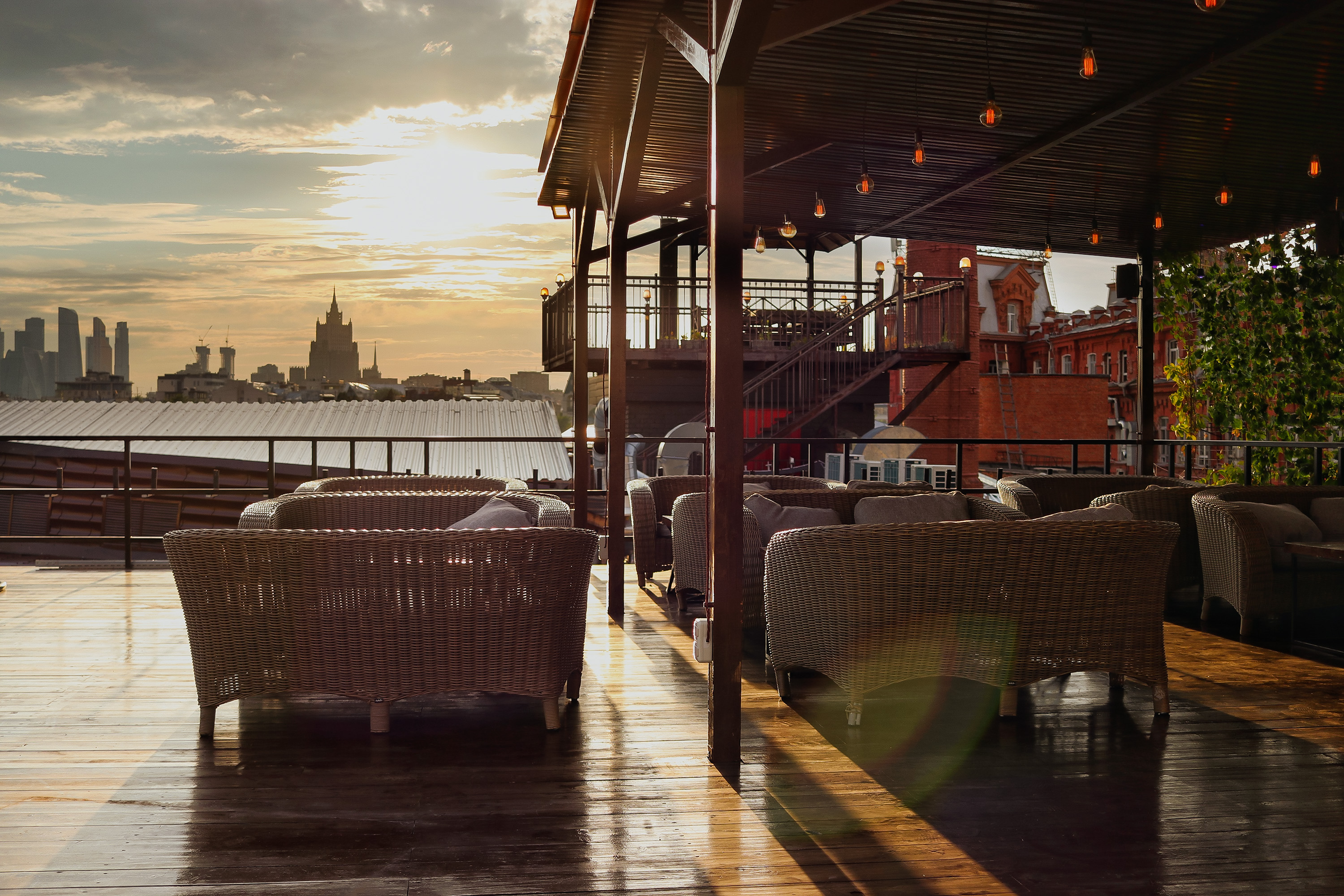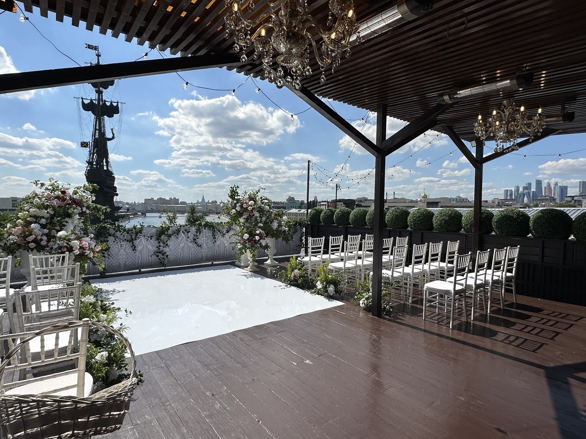 И наш клад - летняя терраса на крыше. Здесь на 200 квадратных метрах можно устроить грандиозное барбекю, провести презентацию, организовать фотозону или кинотеатр под открытым небом. Эффектной на площадке «Крым terrace Moscow» станет и выездная регистрация. Представьте восхищенные глаза гостей и кадры с торжества, где на фоне - потрясающая панорама на Москву.