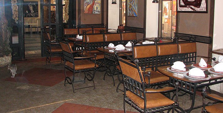 Ресторан «Кузнечный двор» производит самое приятное впечатление на посетителей. А как иначе может быть? Ведь в этом заведении очень недурно готовят, предлагают обширный выбор отличных вин и напитков покрепче. А главное – здесь знают, как нужно принимать гостей! Обстановка вполне соответствует названию ресторана «Кузнечный двор» – много кованых элементов, которые органично вписываются в общий интерьер обеденного зала.