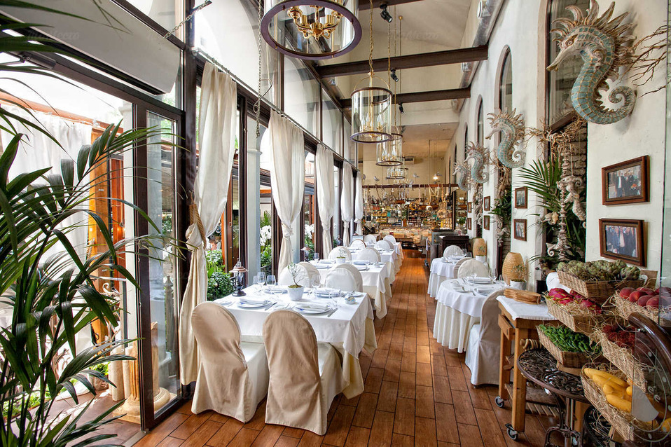 Полинезийское название совершенно ничего не говорит об оформлении интерьера ресторана, в котором перемешались индийские и европейские мотивы. На первых двух этажах Ноа разместилось кафе, оформленное в бордово-золотых тонах. Зона chill-out декорирована в восточном стиле: длинный низкий стол, по обе стороны которого располагаются диваны с мягкими подушками. Здесь же находятся банкетный зал и летняя веранда. В кафе по вечерам выступают ди-джеи.Третий этаж занят рестораном. Интерьер основного зала выполнен в светлых, пастельных тонах. Запоминающаяся деталь – оригинальные стулья, спинки которых похожи на морские раковины. Это не случайно, ведь основу кухни вНоасоставляет рыба и морепродукты, которые в полном объеме красуются на ледяной витрине. Очень красиво выглядит расположенный в зале ресторана гранитный гриль, по углам которого восседают мифические собаки. На третьем этаже гостей развлекает пианист-виртуоз. Меню Ноа предлагает итальянскую и средиземноморскую кухню в исполнении шеф-повара-итальянца. Несколько видов карпаччо (из лангустин, омара или ягненка) соседствуют с супом из белых грибов и тыквы с лангустинами. В разделе пасты взгляд задерживается на равиоли с сыром и цуккини или на лингвини с вонголе. На горячее можно заказать чилийский си-басс со сморчками и картофелем или каре ягненка с соусом порто и фланом из лука. На десерт стоит попробовать мятное семифреддо с шоколадом и ванильным соусом. Обширная винная карта Ноасодержит напитки всех главных винодельческих стран мира.