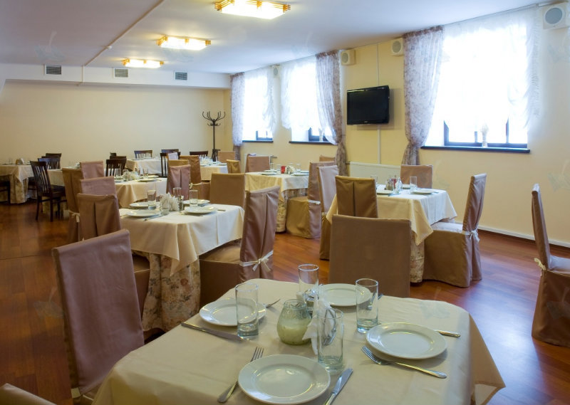 Помещение ресторана Лесной воздух — просторное, светлое, без архитектурных излишеств, но достаточно комфортное для того, чтобы в нем уютно расположились и небольшие компании, и целые группы, отмечающие корпоративные даты или празднующие свадьбу.