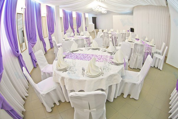 Банкетный зал "Лилак", возможно самый модный свадебный банкетный зал сезона 2012 года. Сочетание нежно сиреневых и белых тонов в интерьере - это самый модный вариант этого года. Владельцы заведения осознанно выбрали именно такую цветовую гамму. Потому что сиреневый цвет - самый актуальный в этом сезоне.