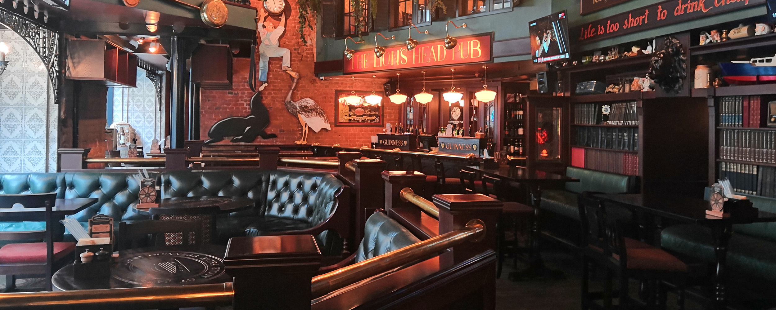 Большое помещение, 2 этажа и 11 отдельных залов, дополнительно звукоизолированый концертный зал. Интерьер выполнен в ирландском стиле 1890-1990 годов с оригинальной завезено мебелью и элементами интерьера из Дублина.