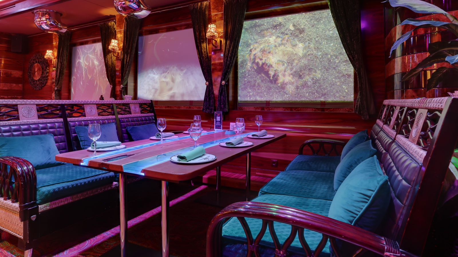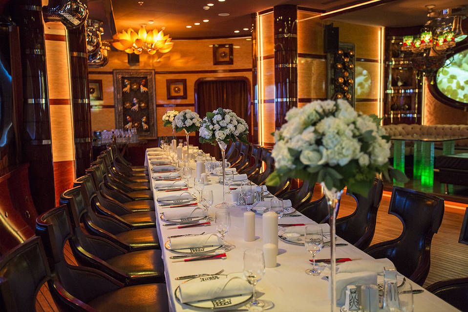 Добро пожаловать на борт! Спасибо, что для своего путешествия в Азию Вы выбрали именно наш ресторан. Разработанный опытными гидами маршрут, позволит с максимальным комфортом перенестись за многие тысячи километров: Япония, Корея, Тайланд, Вьетнам – в атмосфере роскоши и душевной гармонии Вы откроете для себя новый мир. Тиковая доска на полу, плавно переходящая в стены из индийского палисандра, просторные диваны вдоль окон из натурального ротанга, удобные столы из шпона корней экзотических деревьев и потрясающие люстры с мерцающей подсветкой, отражающие небо с плывущими облаками – наша «Лодка», не совсем лодка – а фешенебельная яхта, оборудованная по последнему слову техники. Автоматическая система «день-ночь», одним нажатием кнопки превращающая ресторан в подводную лодку с плавающими в окнах акулами и морскими львами, искусно спрятанная в экзотическом убранстве профессиональная аудио-визуальная аппаратура, достойная самой крутой дискотеки, меню на планшетахiPad, позволяющее наблюдать весь процесс приготовления блюда – одним словом, впечатляет