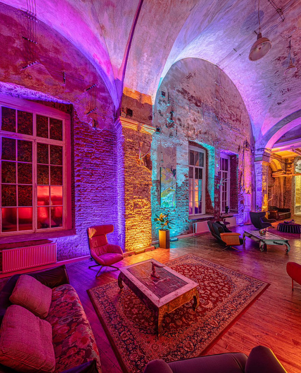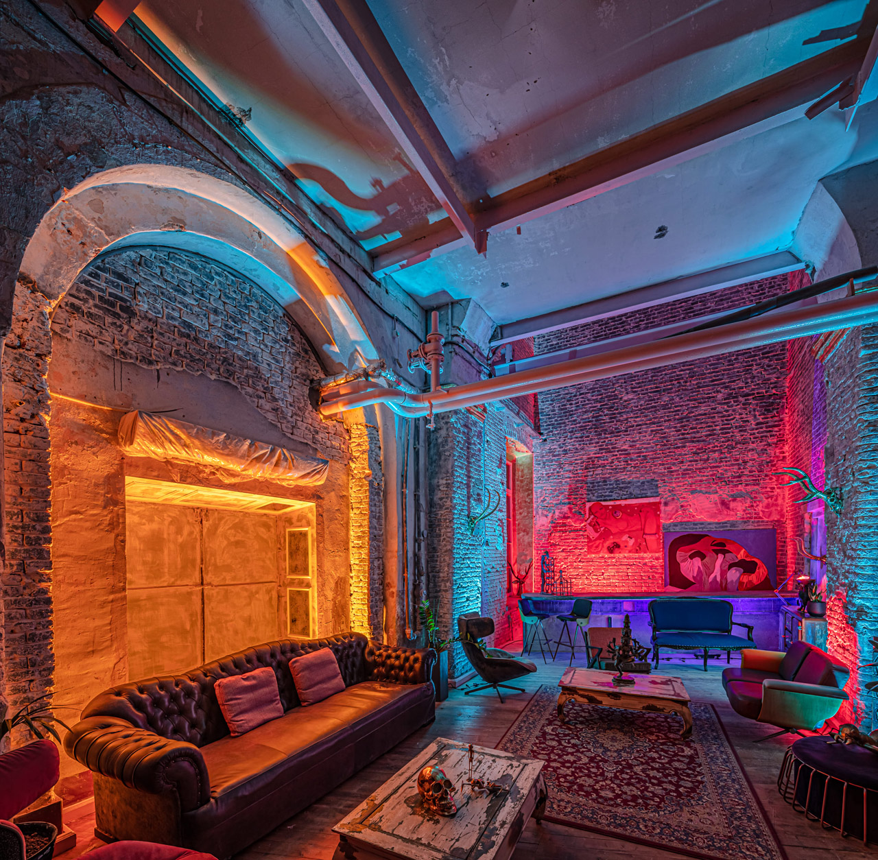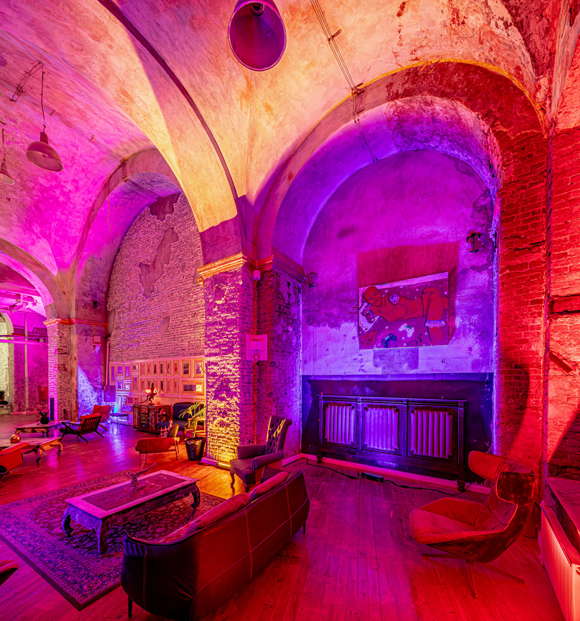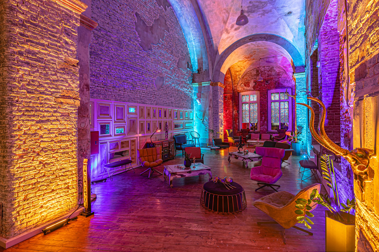 LOFT#7 — это 5 дизайнерских залов с возможностью трансформации площадью от 200 до 1500 m2 и общей вместимостью до 1500 персон.