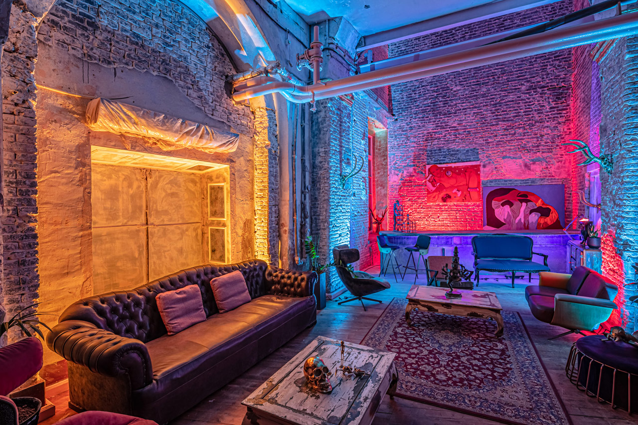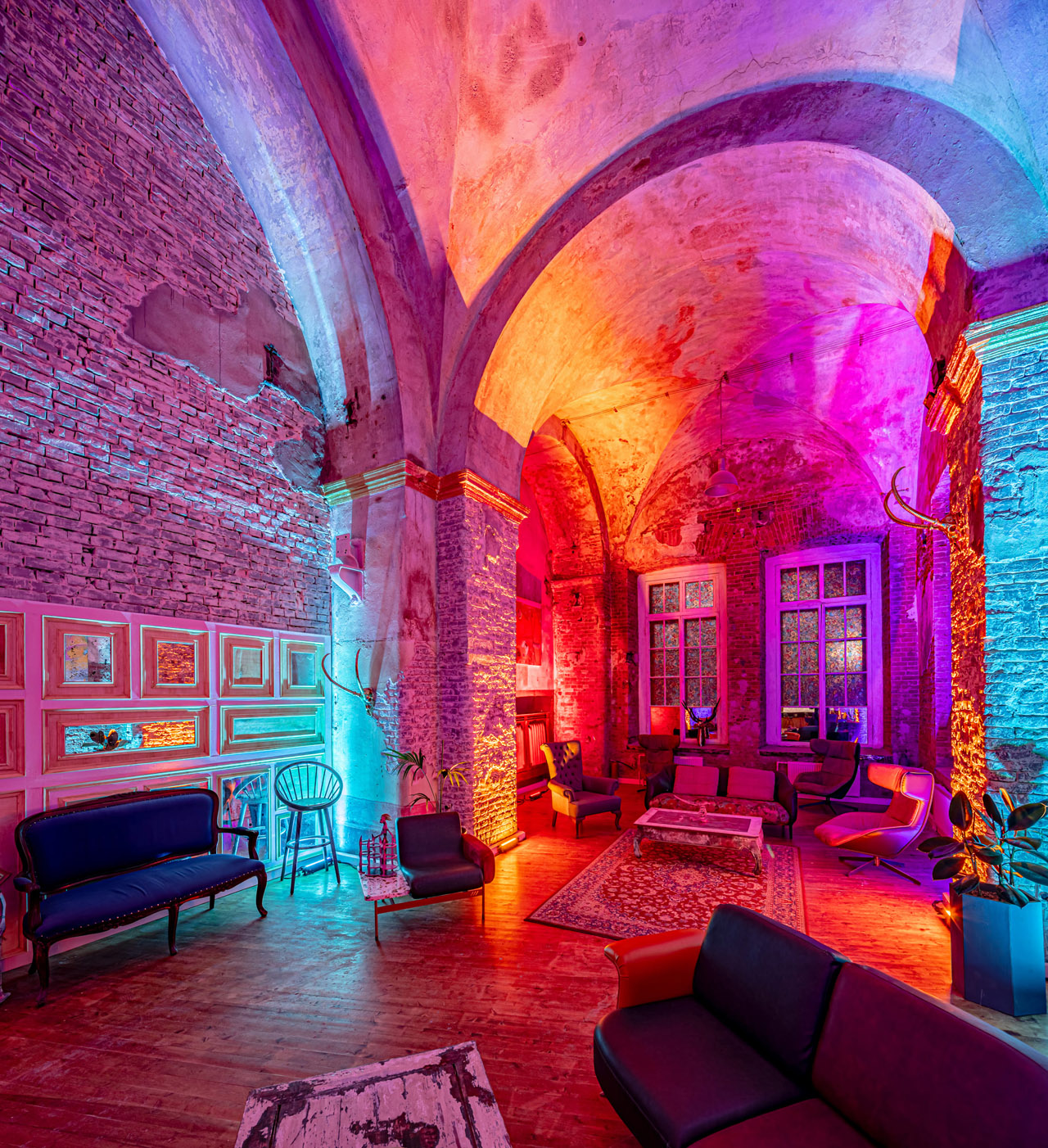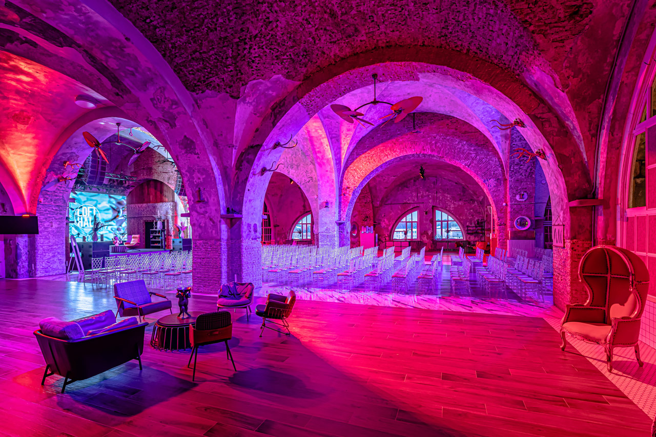 LOFT#7 — это 5 дизайнерских залов с возможностью трансформации площадью от 200 до 1500 m2 и общей вместимостью до 1500 персон.