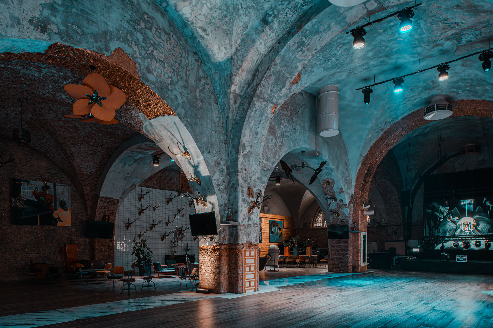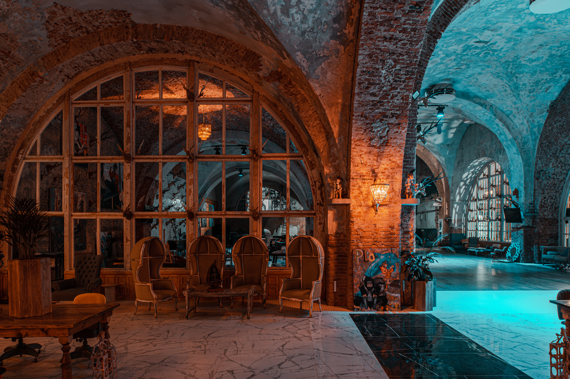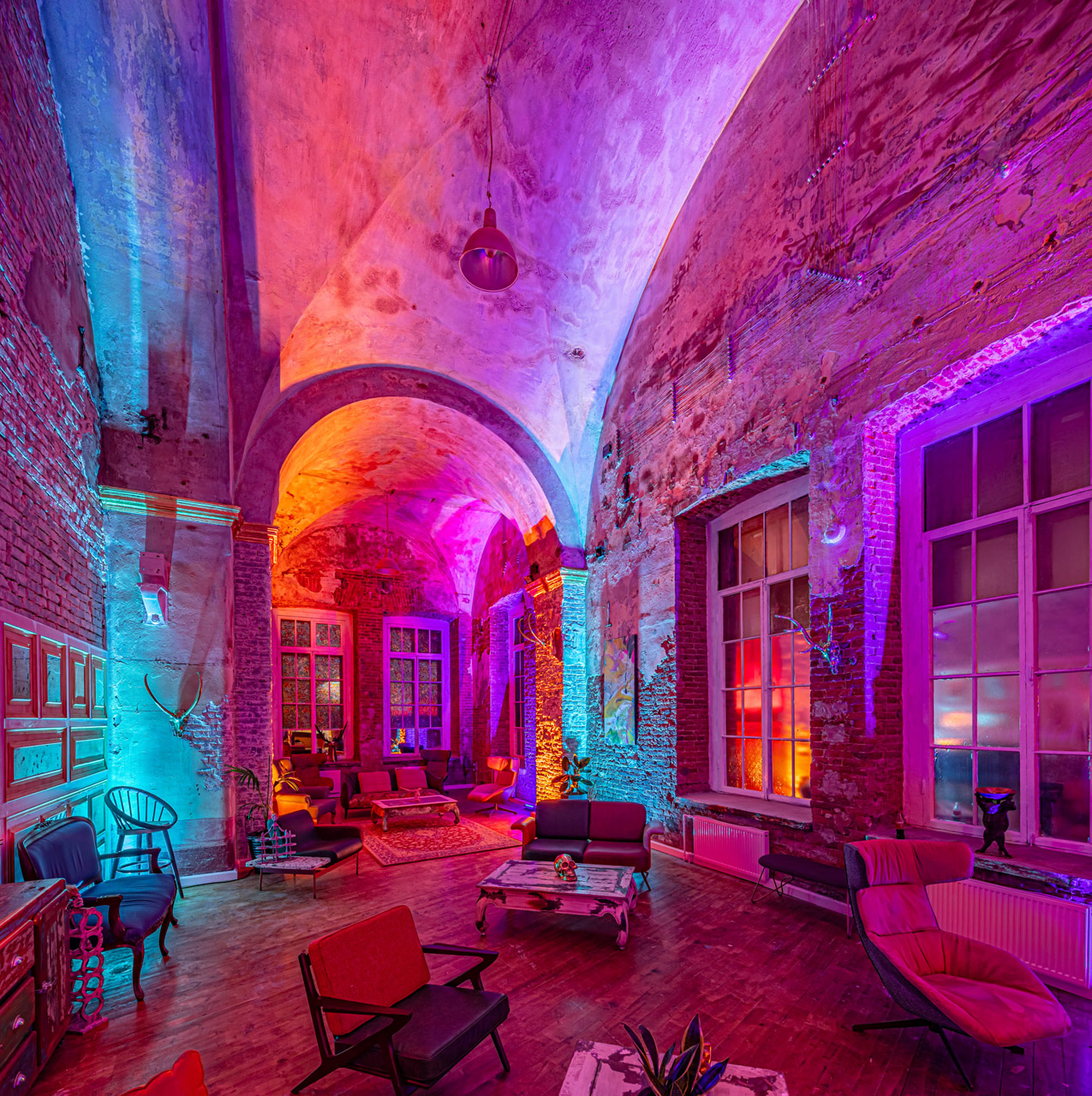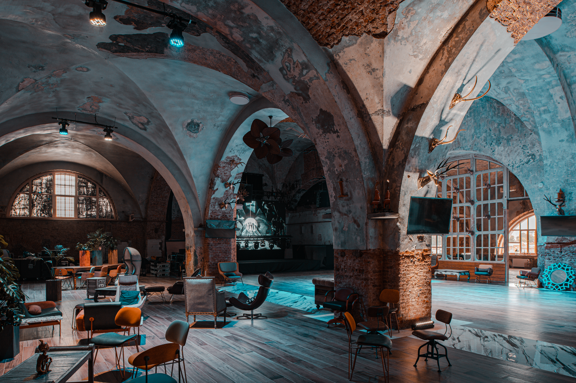 LOFT#7 — это 5 дизайнерских залов с возможностью трансформации площадью от 200 до 1500 m2 и общей вместимостью до 1500 персон.