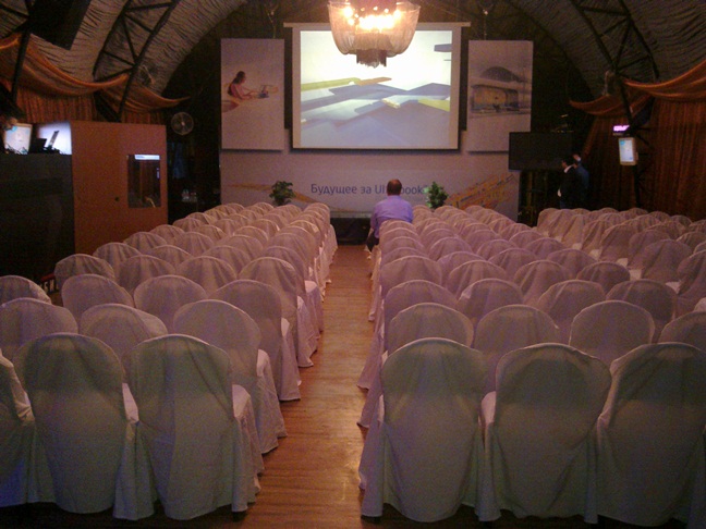- отличный комплект звукового, светового, видео оборудования, также наличие сценических блоков и комплекта диджейского оборудования в каждом зале