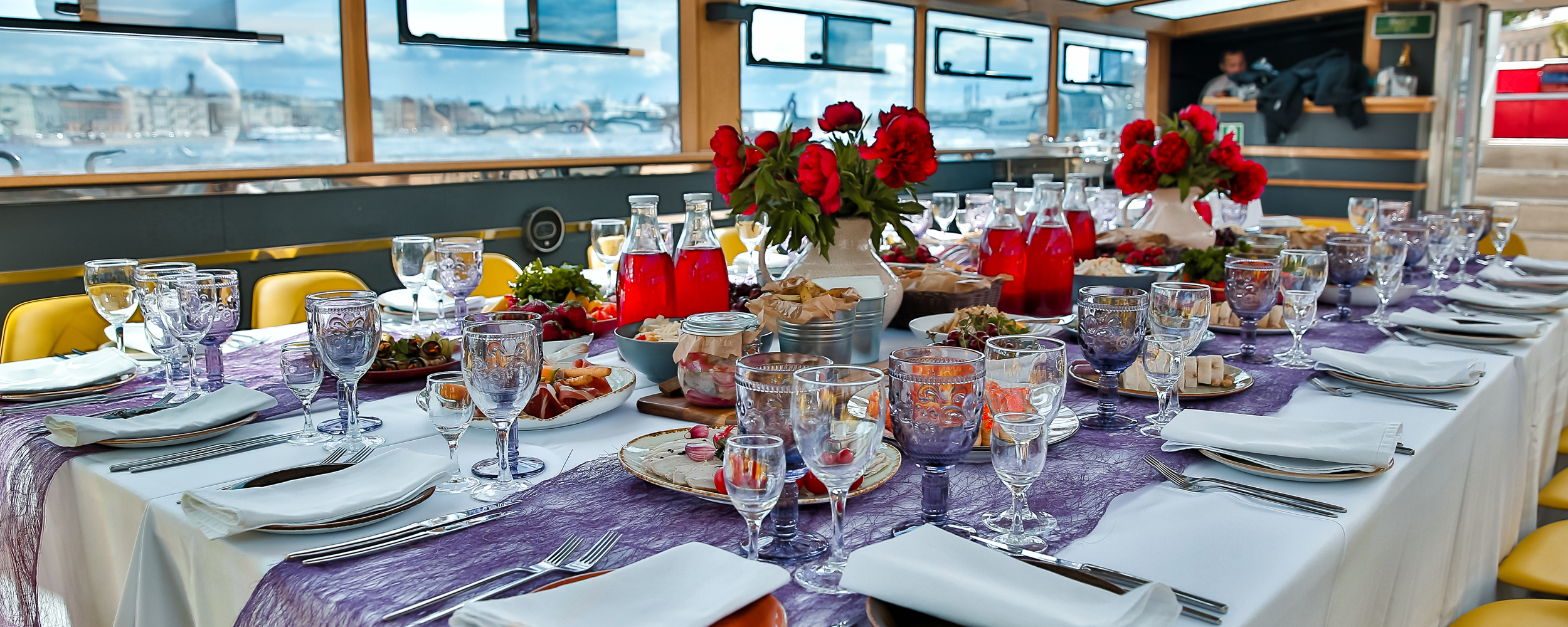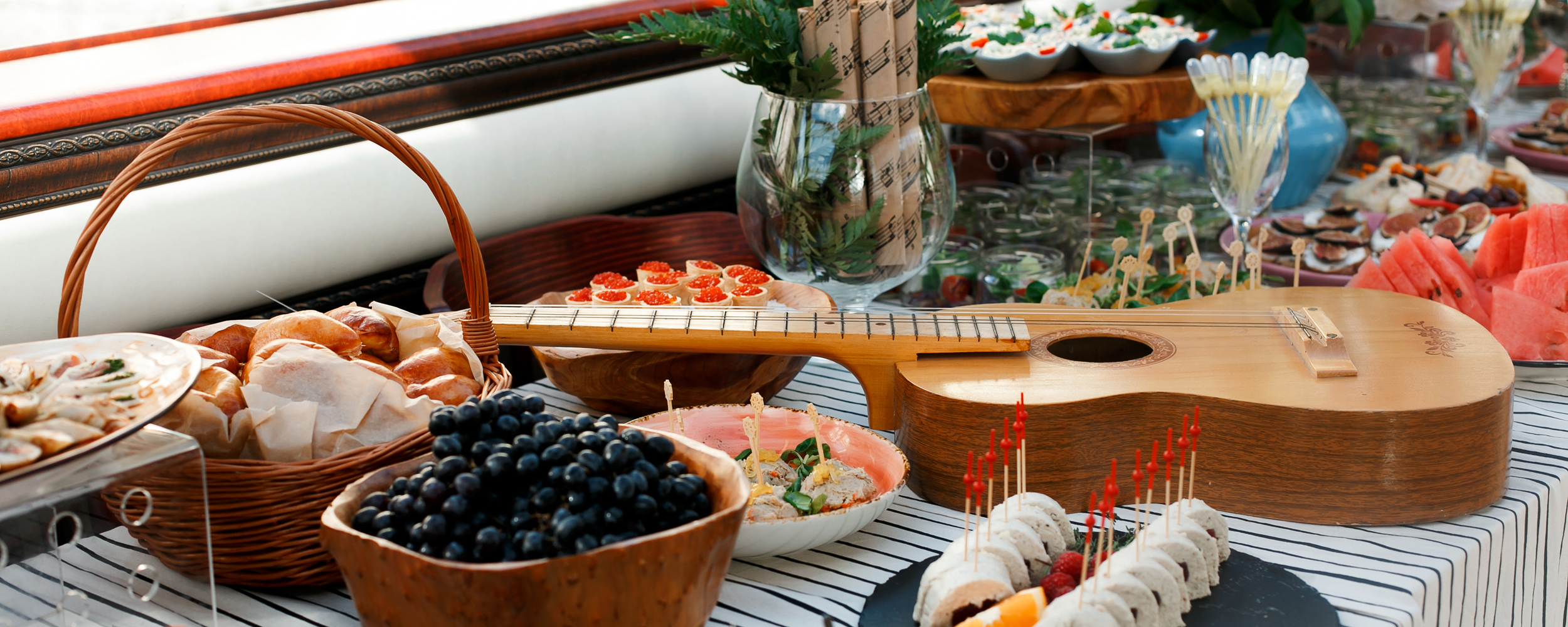 Что бы вы ни заказали — легкий фуршет европейского уровня или банкет высшего класса, обслуживание свадьбы или выпускного бала, великосветский прием во дворце или праздник на теплоходе, пикник на природе или деловой обед у вас в офисе, — мы предоставим вам безупречный сервис «под ключ».