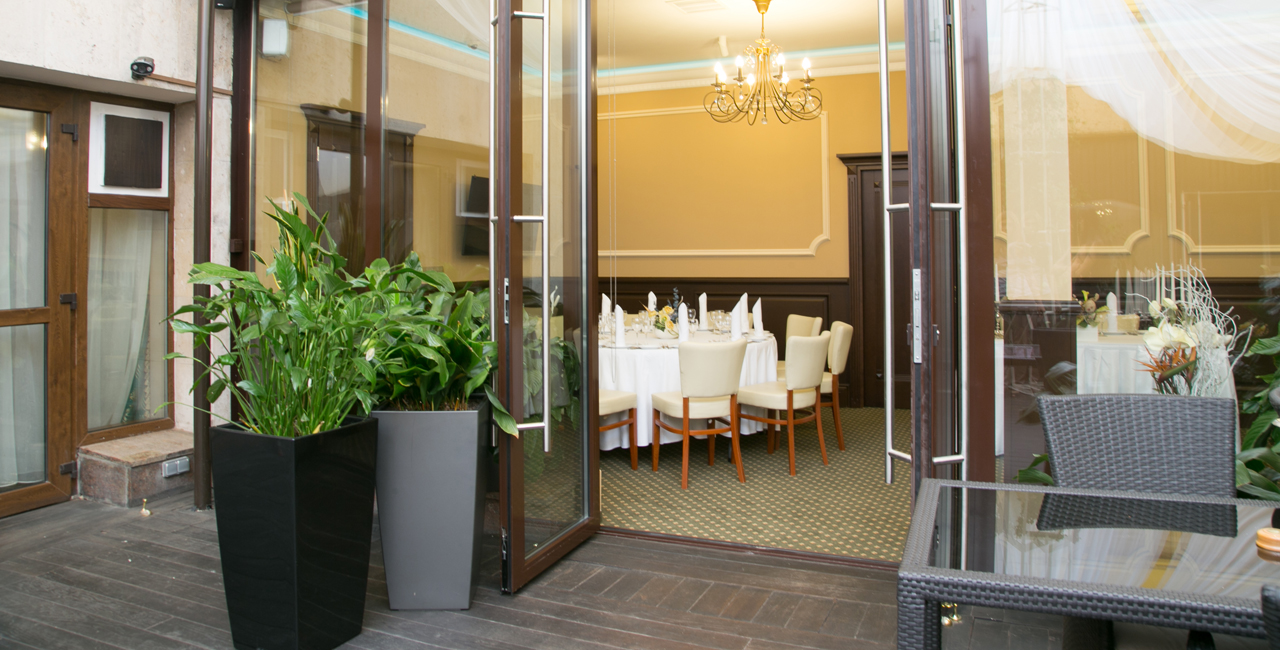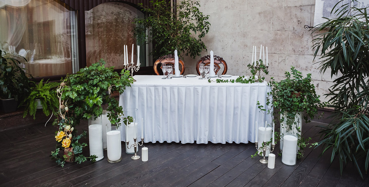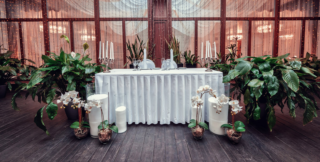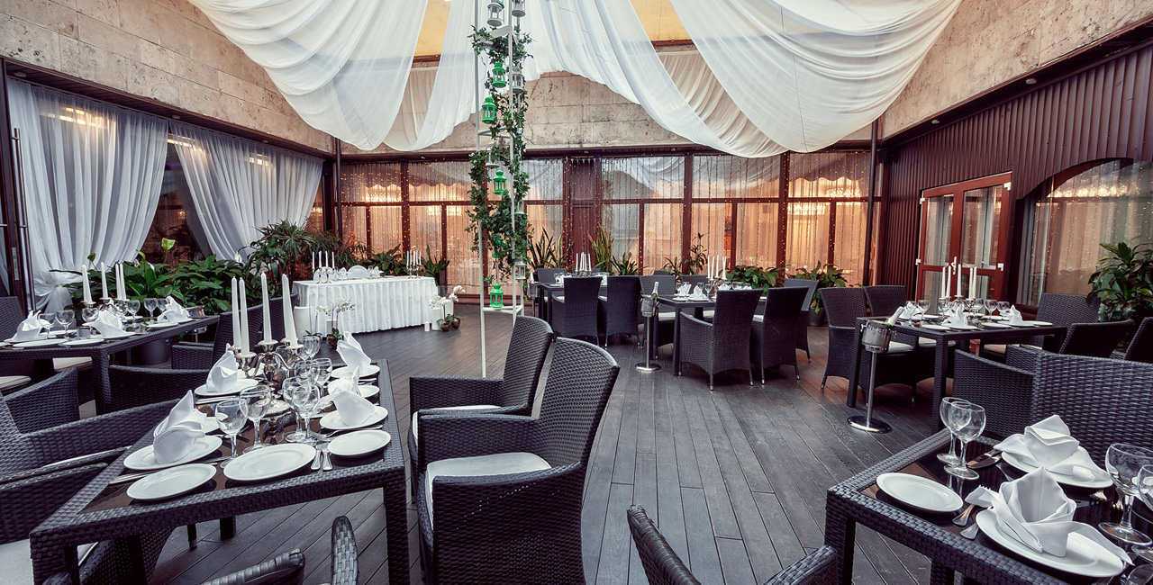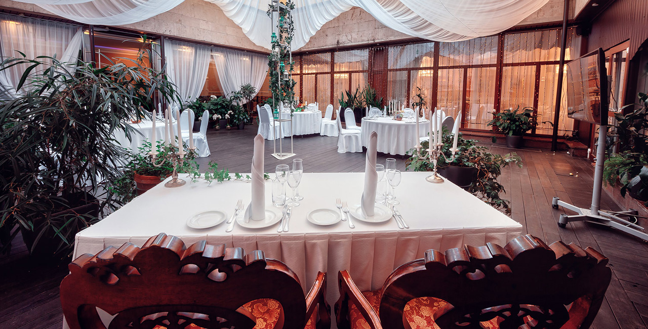 В элегантном оранжевом холле гостей ждет изысканный аперитив, банкетный зал ресторана украшается в соответствии с пожеланиями молодоженов. Несколько вариантов set-меню разной ценовой категории позволяют провести банкет любого уровня.