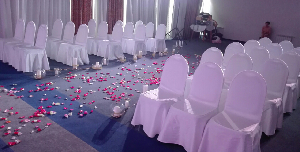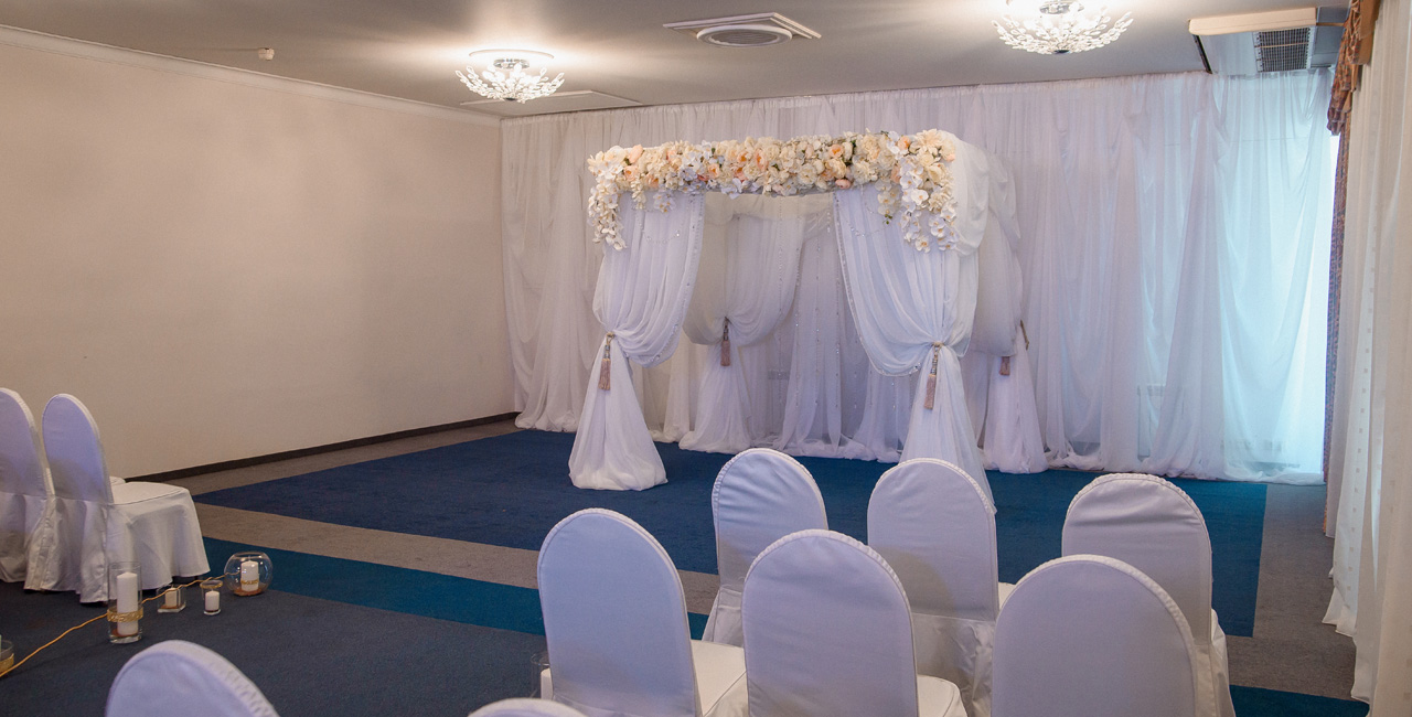 Молодоженам предоставляется роскошный люкс, шампанское и фрукты в номер, завтрак, сеанс в сауне и фитнес-студии, поздний выезд в 16:00. При заказе свадебного торта – каравай в подарок!