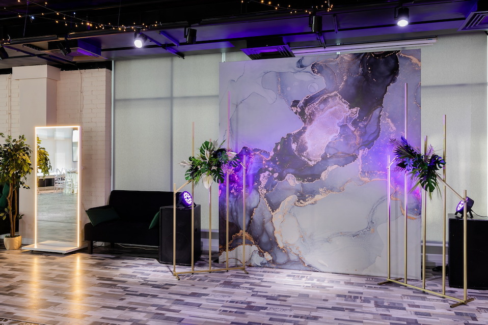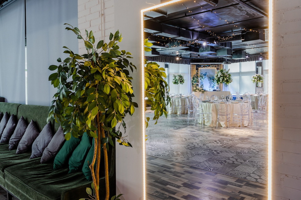 Арендуя зал в банкетной площадке «Марсерия», гости получают яркую фотозону, большой экран для трансляций и световую подсветку — цвет устанавливаем на вкус гостей. Пространство дополнили сияющими звездами и оформили в универсальном стиле лофт. Команда зала приготовила широкий список дополнительных услуг: у нас можно заказать фотобудку или дым для волшебного танца «в облаках». Для маленьких гостей обустроим аккуратный уголок с раскрасками.