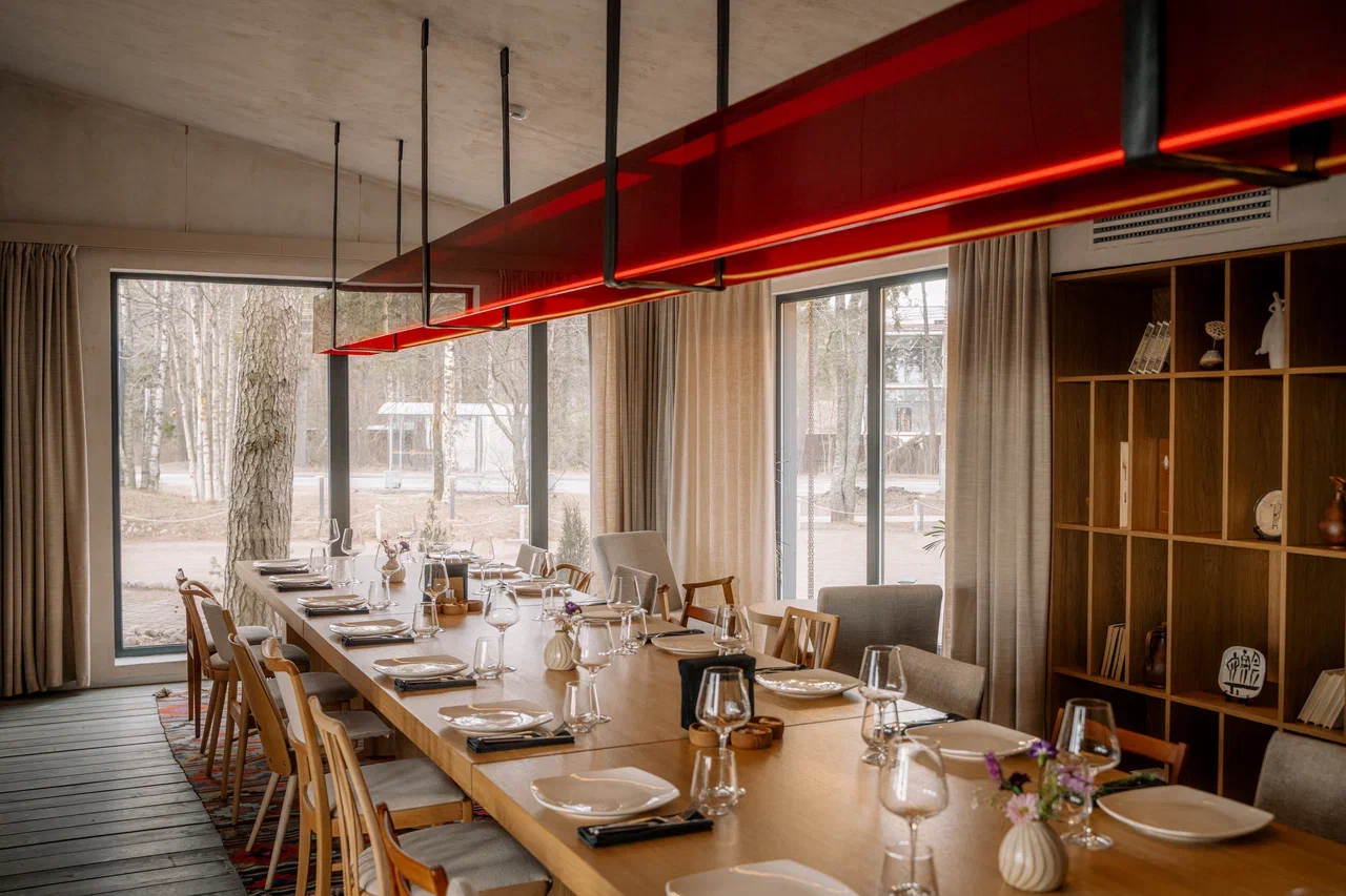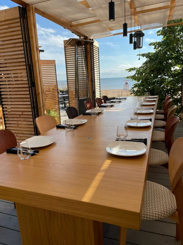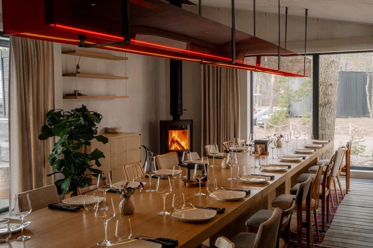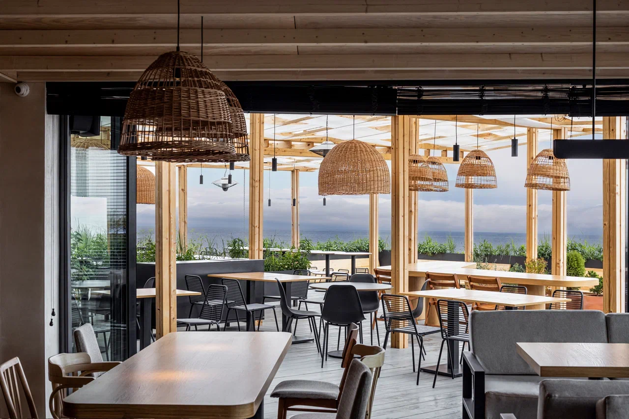 Уютный уголок отдыха на берегу Финского залива с просторным и светлым интерьером, созданным архитектурным бюро DA BUREAU. Зимой здесь царит атмосфера теплого загородного дома с ярким камином и пушистой новогодней елкой, а летом ресторан превращается в европейский курорт на первой линии с панорамными видами на побережье и летние закаты.