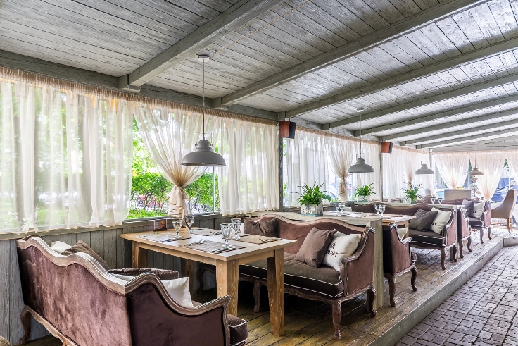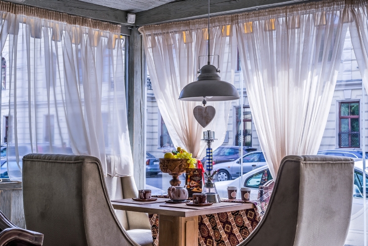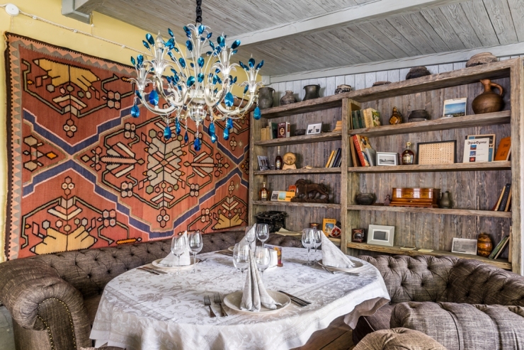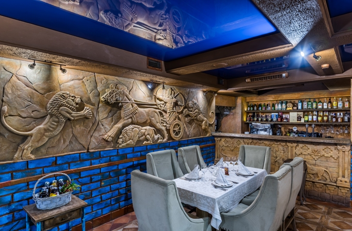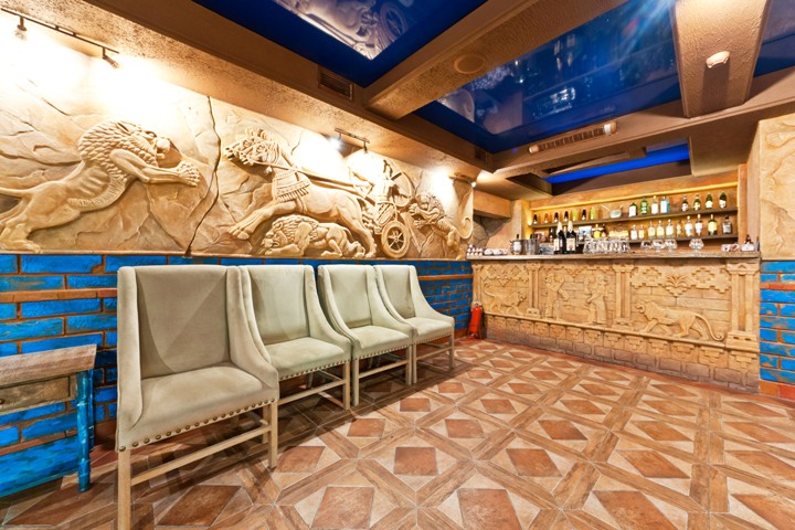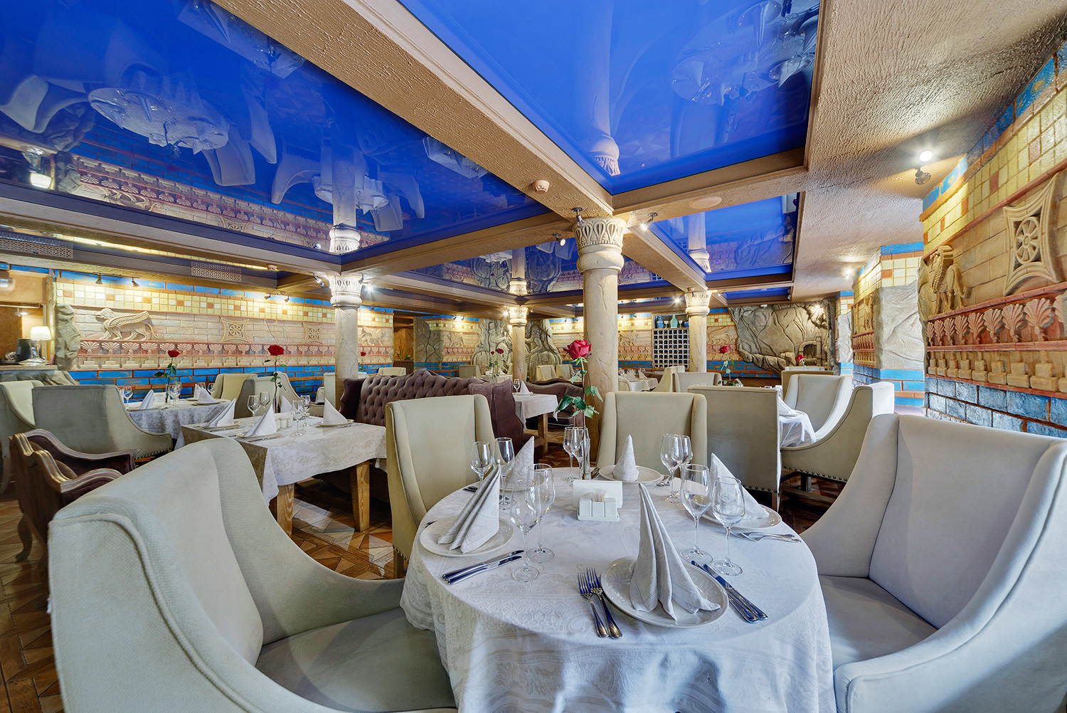 Интерьер ресторана полностью олицетворяет культуру Армении. На стенах - точная копия барельефов крепости Эребуни (Ереван). Уютную атмосферу создают мягкие диваны, эксклюзивные скатерти, посуда ручной работы и обивка мебели из бархатной ткани традиционного армянского цвета. Ресторан состоит из двух залов: основной и малый (с баром, открытой кухней и лавкой армянских продуктов), а также уютной всесезонной террасы с большими окнами, цветами и атрибутами древней Армении.