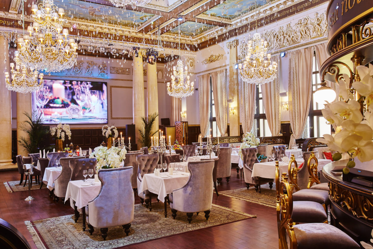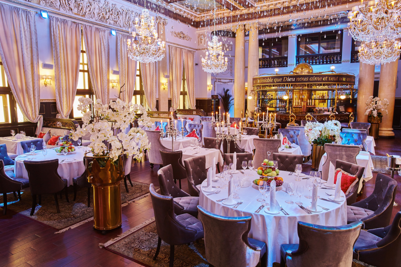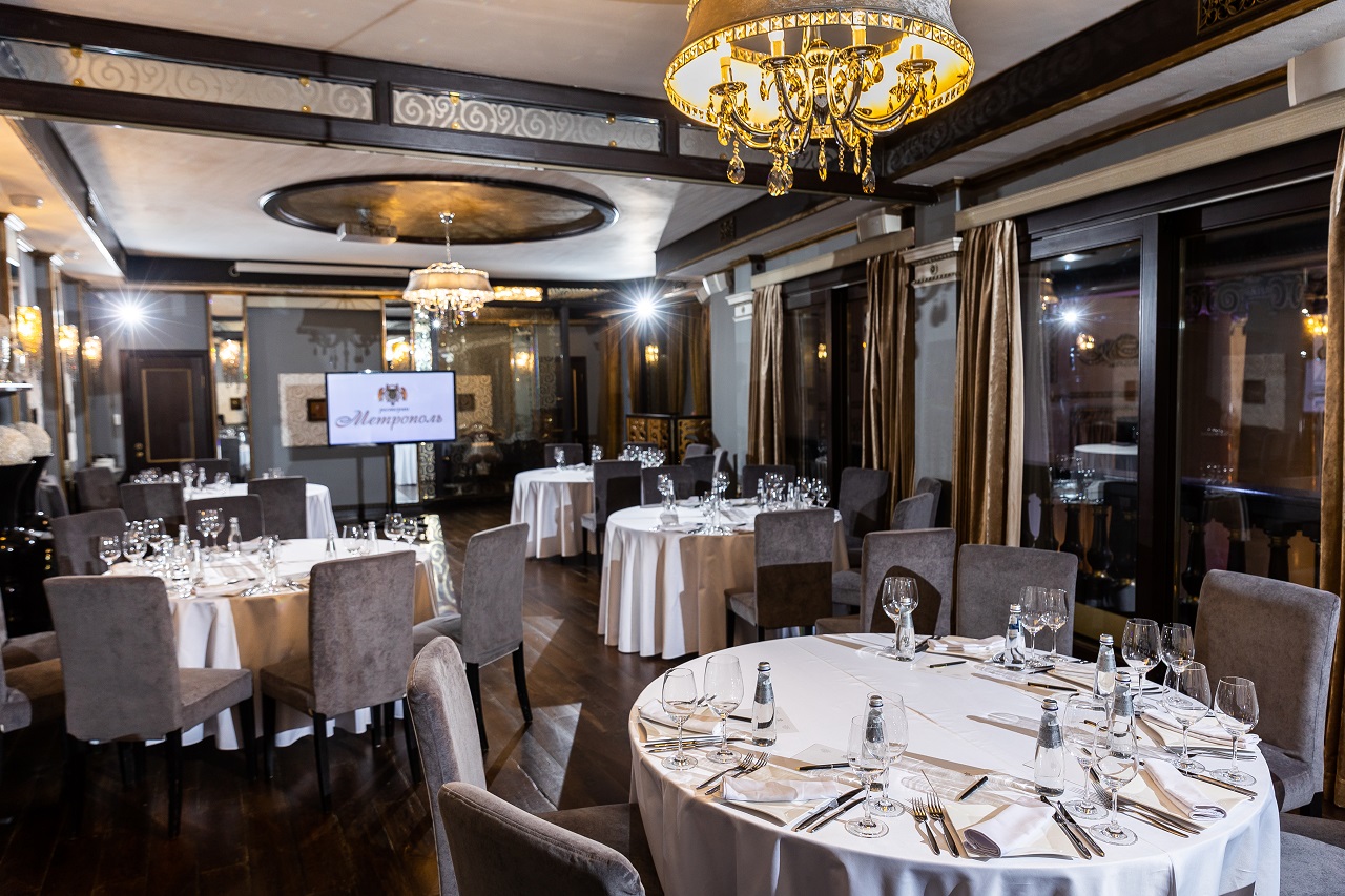 В Большом зале ресторана «Метрополь» Вы становитесь не только свидетелем богатого прошлого, но и являетесь участником современной истории, ведь наш ресторан чутко прислушивается к каждому гостю. Мы приглашаем Вас прикоснуться к изысканной кухне и разделить с нами радость нового дня. Роскошный зал вместимостью до 150 гостей. В зале возможно размещение гостей по всем канонам европейской рассадки. В зале имеется сцена, бар, гримерная. Ежедневно в данном зале мы сервируем завтраки для жителей и гостей нашего города.
