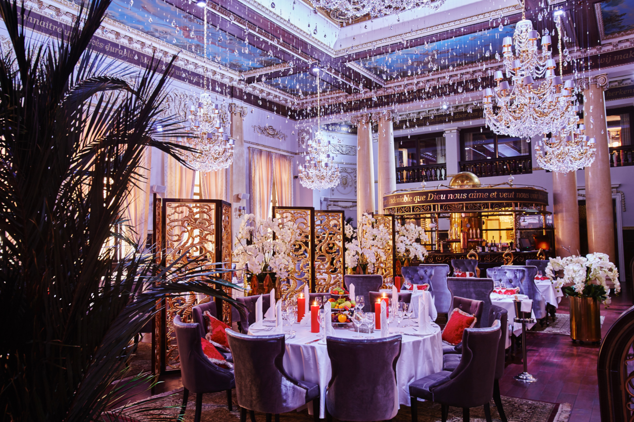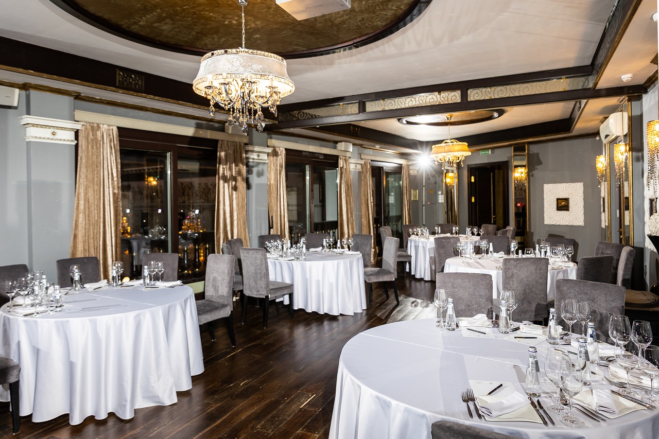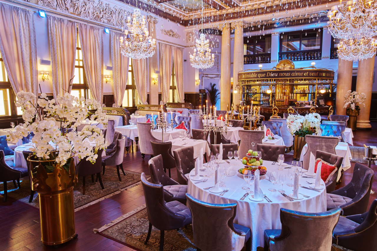 В Большом зале ресторана «Метрополь» Вы становитесь не только свидетелем богатого прошлого, но и являетесь участником современной истории, ведь наш ресторан чутко прислушивается к каждому гостю. Мы приглашаем Вас прикоснуться к изысканной кухне и разделить с нами радость нового дня. Роскошный зал вместимостью до 150 гостей. В зале возможно размещение гостей по всем канонам европейской рассадки. В зале имеется сцена, бар, гримерная. Ежедневно в данном зале мы сервируем завтраки для жителей и гостей нашего города.