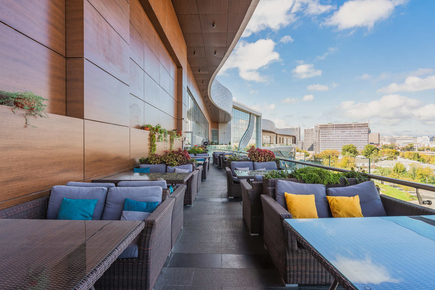 Все наши гости могут воспользоваться этой «изюминкой» и выбрать приватный уголок для проведения своего мероприятия. Без потерь по уровню сервиса и качеству продуктов. Так же здесь у нас в заведении есть открытая летняя веранда с потрясающим видом на город, для тех, кто ценит комфорт и возможность оказаться на «воздухе», не выезжая из Москвы.