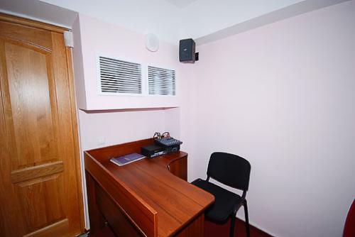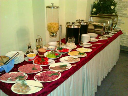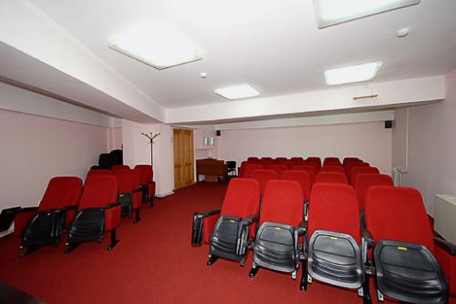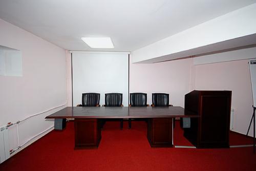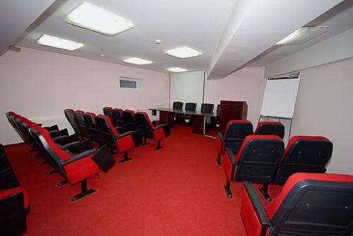 Конференц-зал расположен в цокольном этаже гостиницы, там же где и ресторан, что делает удобным проведение встреч, совмещенных с фуршетом, кофе-брейками, банкетами и т.д.