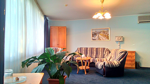 В номерах мягкая мебель, мини-бары и цветные телевизоры. Центральная система кондиционирования обеспечит прохладу в летний зной и тепло в холодное межсезонье.