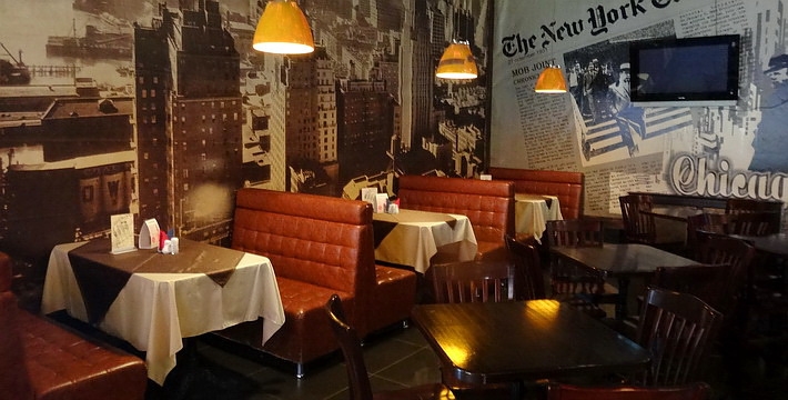 Небольшой бар в подвальчике на Большой Зеленина. Mob открывается в 12:00 и сразу же предлагает бизнес-ланчи: на первое дают суп, на второе — бургер или шаверму с салатом, на третье — чай или морс. Бургеров в меню около десяти — с котлетами, фалафелем, уткой конфи и даже тушенкой. Выбор десертов необычен — есть манник «Иранник» с сухофруктами и пудинг «Православный». Из алкоголя только линейка пивного крафта. Голубые стены «Моба» оживляют яркие рисунки бургеров. На плазме транслируют спорт, а по выходным сериалы.