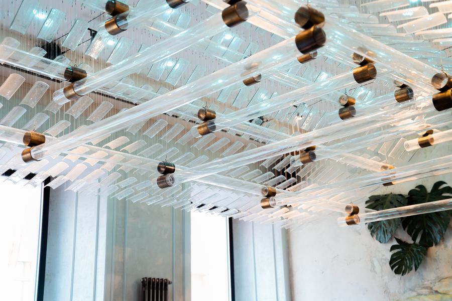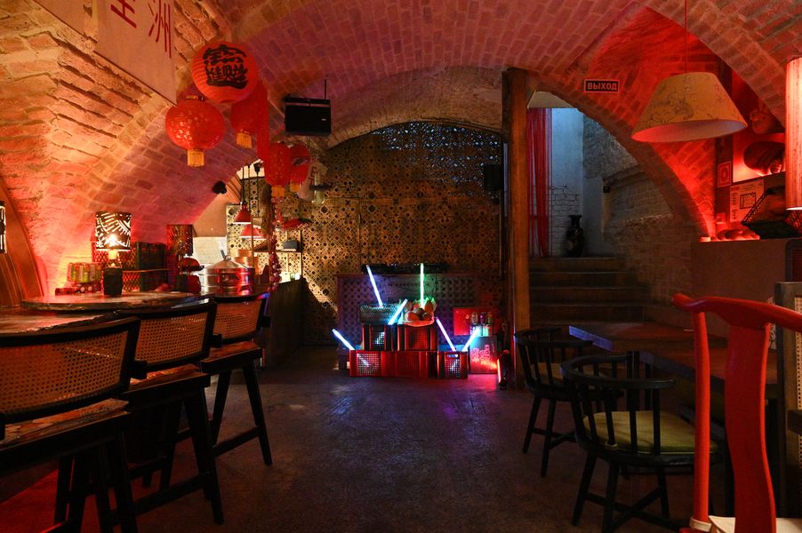 На первом этаже, отсылающем антуражем к современной Азии, представлен стритфуд. Здесь действует сценарий «пришел, выпил, закусил». Быстро и с чувством эстетики, потому что за баром наливают 15 видов авторских шотов от бренд-бармена холдинга Андрея Корнилова и отдают 21 вид дим-самов – легкой закуски из тонкого теста и начинки. Все шоты – про яркость азиатских вкусов и легкое сумасшествие. «Леди бой» с клубничным сиропом или «Белое золото» с кокосовой сгущенкой – на роме. «Крейзи Сингапур» с черной смородиной и фиалкой или бабушкин любимчик «Стен Ли» с киви и базиликом – на джине.