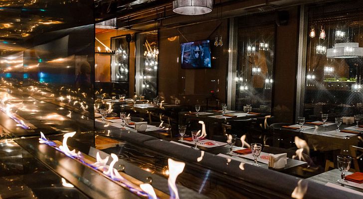 Если говорить об интерьере заведения, то он не слишком перекликается с названием бара. Огня в основном залах мало, а дизайн помещения смотрится несколько обыденно. Зато обстановка здесь точно романтичная. Приглушённый свет, удобные диваны с дорогой обивкой, живые растения в горшках, приятный вид из окна – всё это располагает к общению, позволяет расслабиться и на время забыть о бренности жизни.