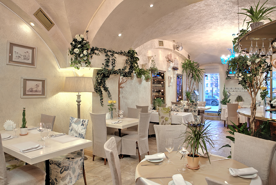 «Палермо» - светлый и просторный ресторан, рассчитанный на 50 посадочных мест.Жемчужно-белые стены, утопающие в зелени, уединенный подиум с мягкими диванамицвета морской волны, элегантная мебель из массива дерева и настенные фрески с видамиПалермо, передают атмосферу беспечного отдыха и ощущение предвкушения праздника.