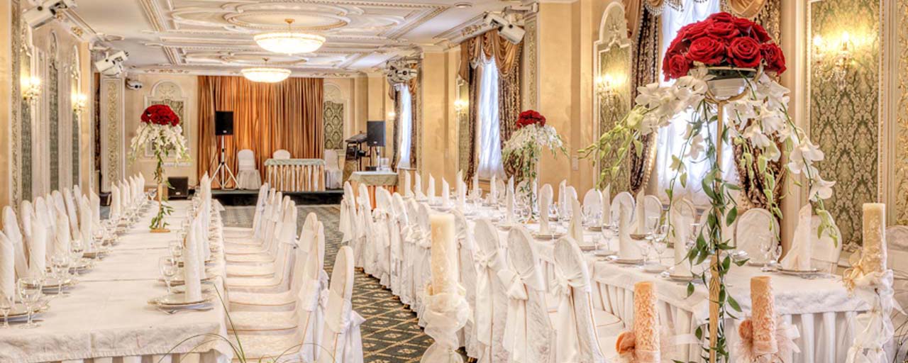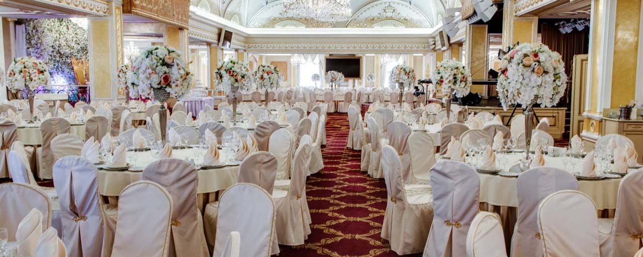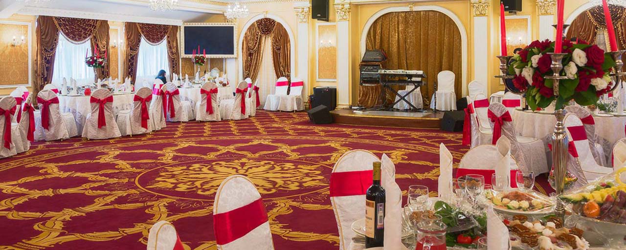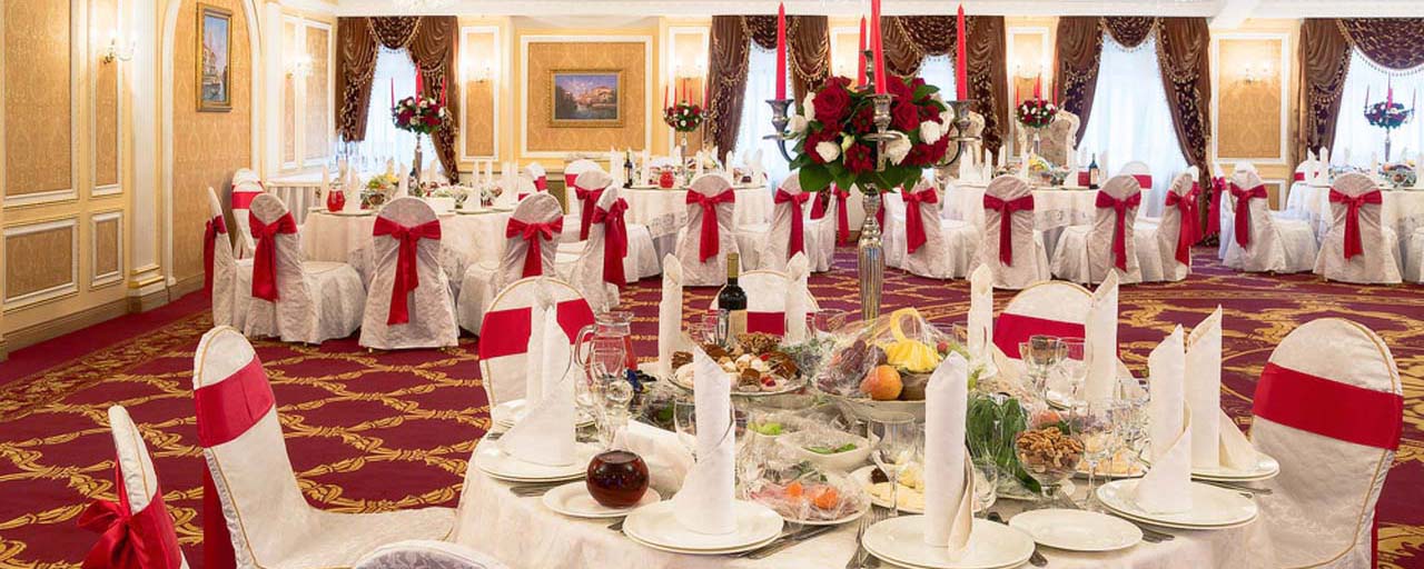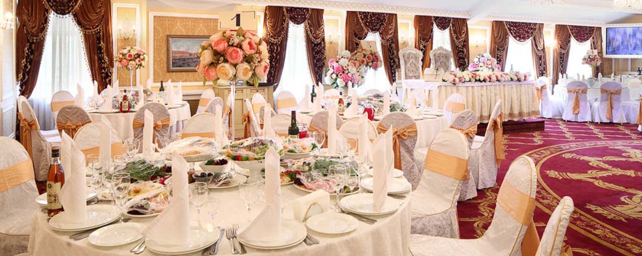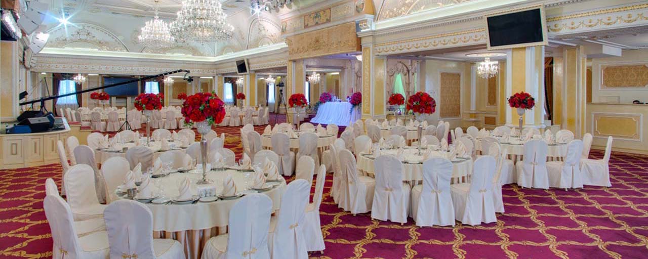 Банкетный зал «Парадайз» — великолепный выбор для проведения любых мероприятий, будь то деловая встреча, юбилей, аренда банкетного зала для свадьбы, банкет, день рождения, презентация, корпоративное мероприятие или встреча Нового года. Роскошные интерьеры, изысканная кухня. Проведение любых мероприятий, от деловой встречи или банкета, до юбилея или корпоративных праздников.