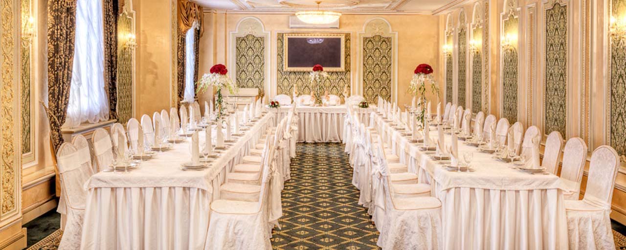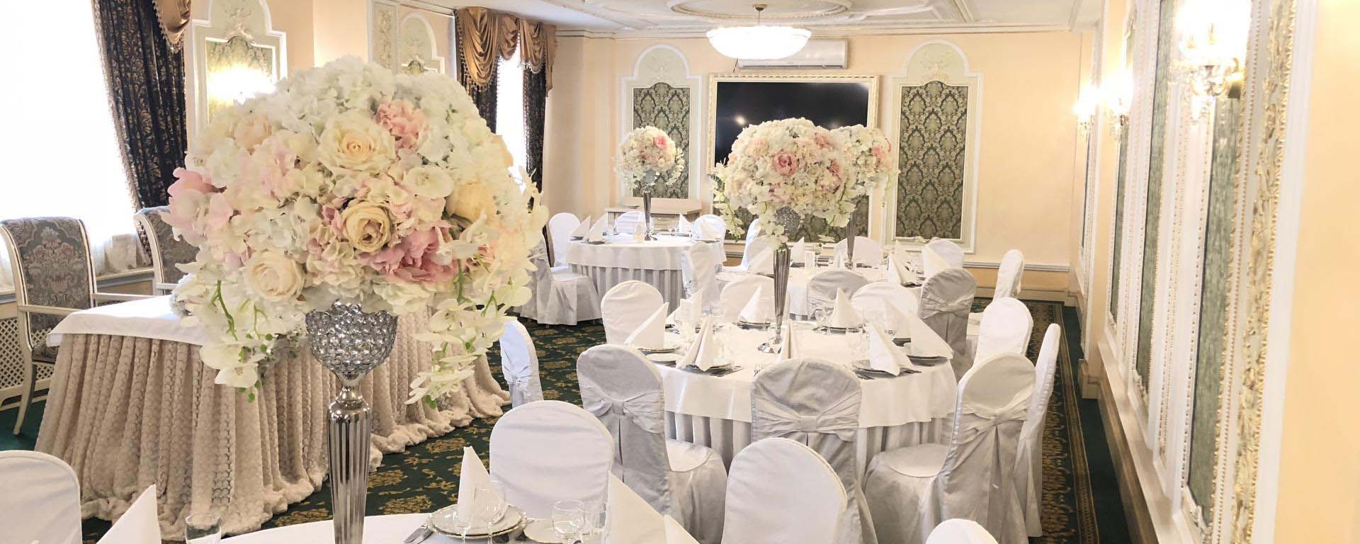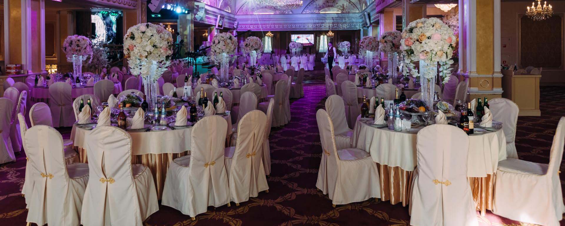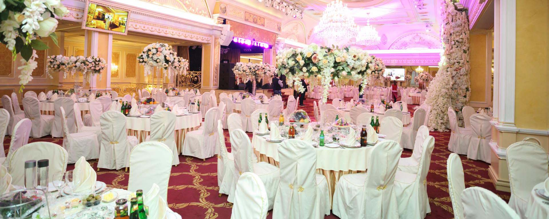 Банкетный зал «Парадайз» — великолепный выбор для проведения любых мероприятий, будь то деловая встреча, юбилей, аренда банкетного зала для свадьбы, банкет, день рождения, презентация, корпоративное мероприятие или встреча Нового года. Роскошные интерьеры, изысканная кухня. Проведение любых мероприятий, от деловой встречи или банкета, до юбилея или корпоративных праздников.