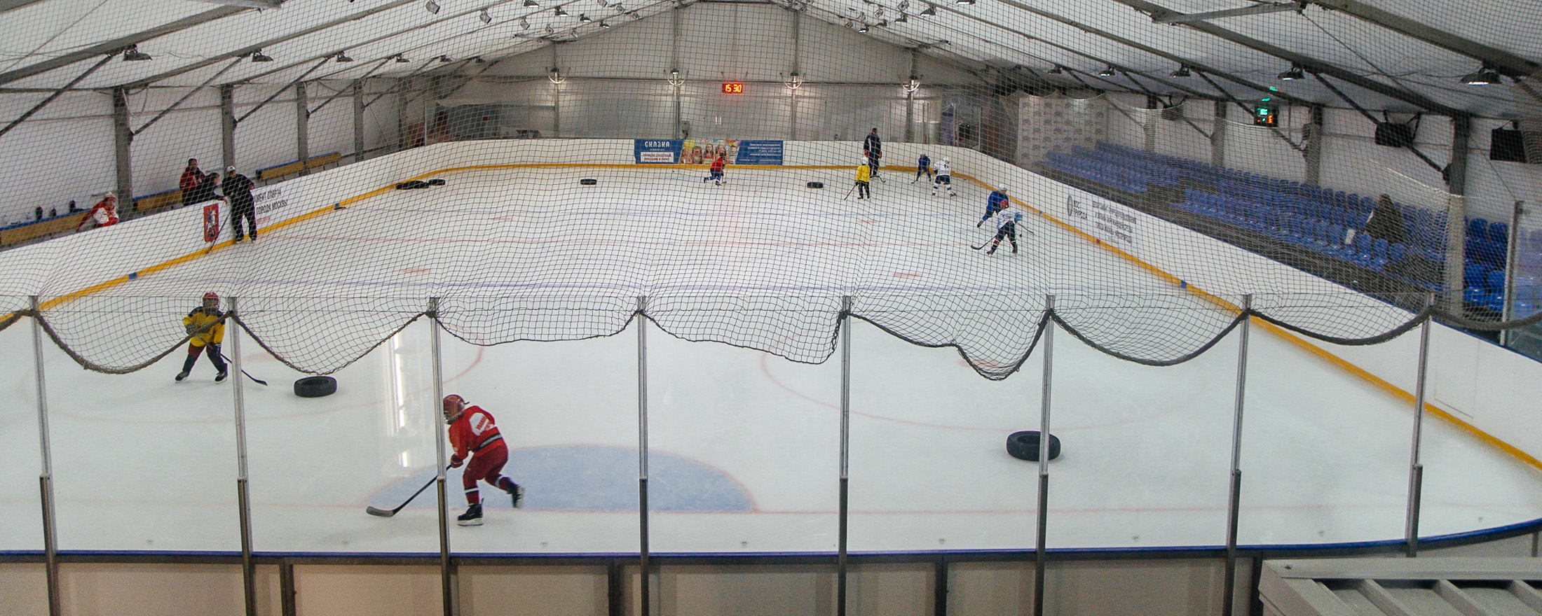 *Два катка- крытый каток (1200 м2) с трибунами и тёплыми раздевалками. Открытый каток (2500м2) со сценой и тёплым шатром (600м2).