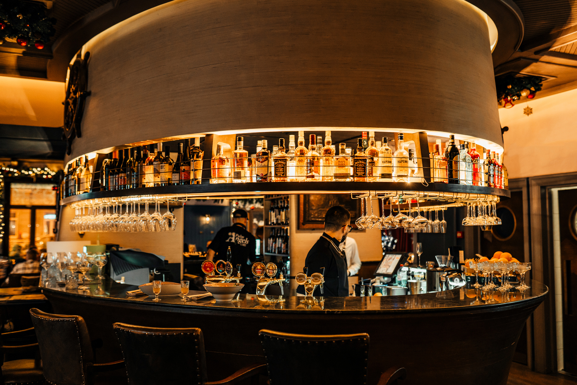 Ресторан занимает помещение в два этажа. На первом расположен просторный зал с барной стойкой и сценой, на втором – вместительный зал ресторана. Однако невооруженным глазом можно отметить одну общую черту в оформлении – «морские» мотивы. Здесь и картины, изображающие морские пейзажи, и окошки-иллюминаторы, и якорь, возвышающийся над барной стойкой, и прочая атрибутика.