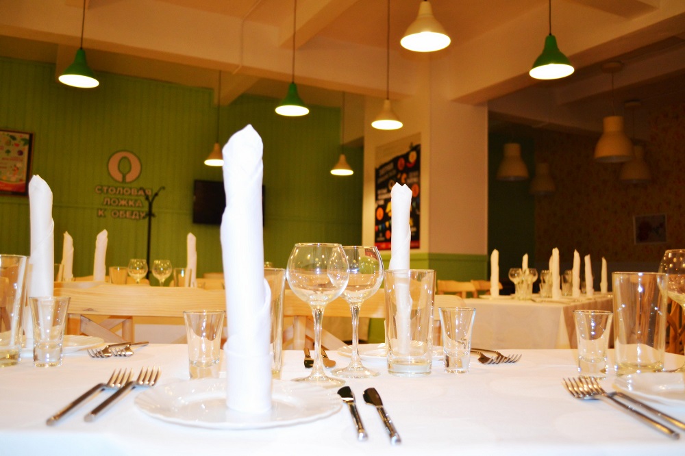 Зал очень просторный и светлый с прямоугольными колоннами, вмещает до 100 приглашённых! В интерьере преобладают мягкие пастельные тона c мелкими цветочными орнаментами и воздушные шторы.