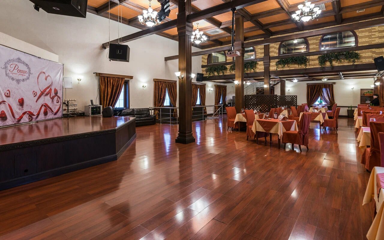 - Основной зал, вместимостью до 100 персон, идеально подойдет для большой свадьбы, юбилея, корпоратива, выпускного или проведения конференции. Оснащен музыкальной аппаратурой, сценой, светомузыкой, проектором с экраном.
