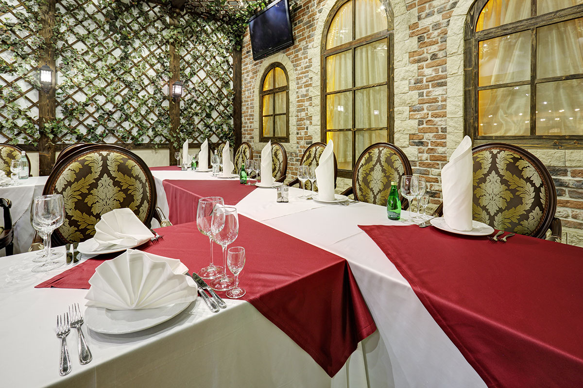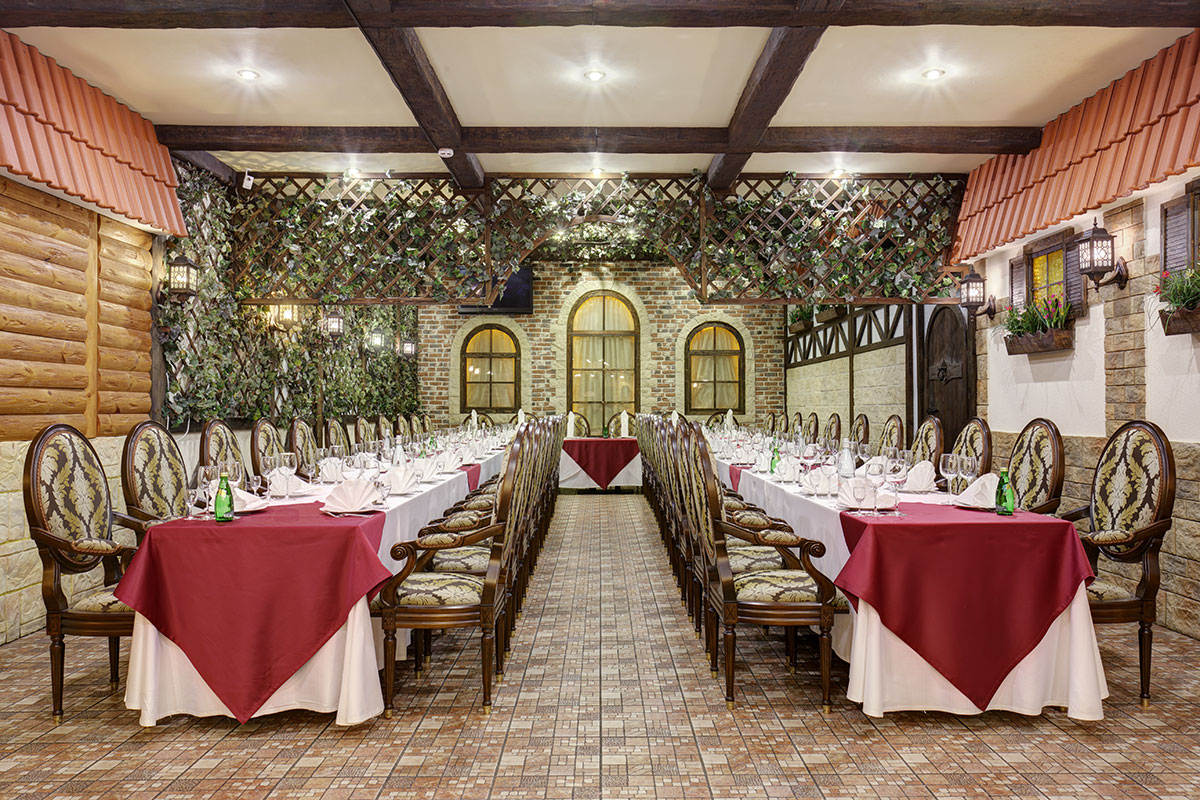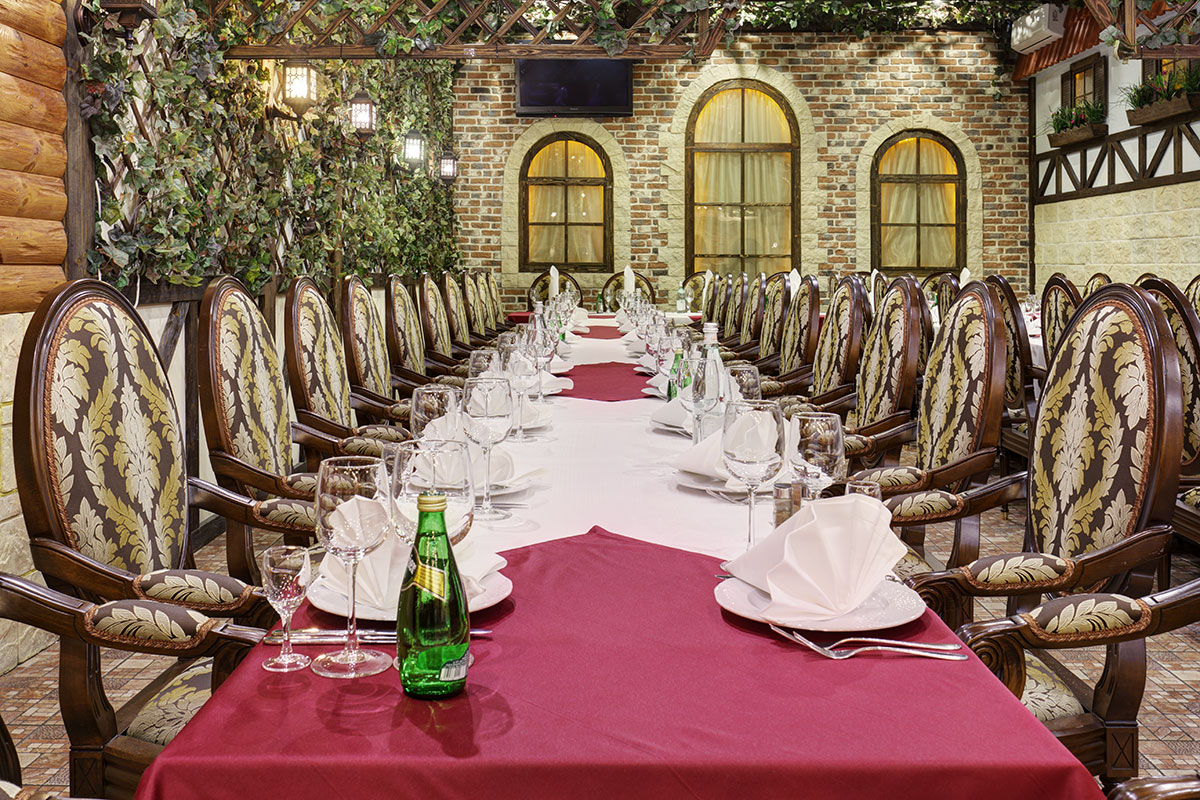 Задача банкетного комплекса — сделать проведение праздников максимально комфортным, поэтому гости всегда могут принести собственный алкоголь и по договоренности, деликатесы. Также нет никаких ограничений по оформлению пространства и организации выступлений артистов.