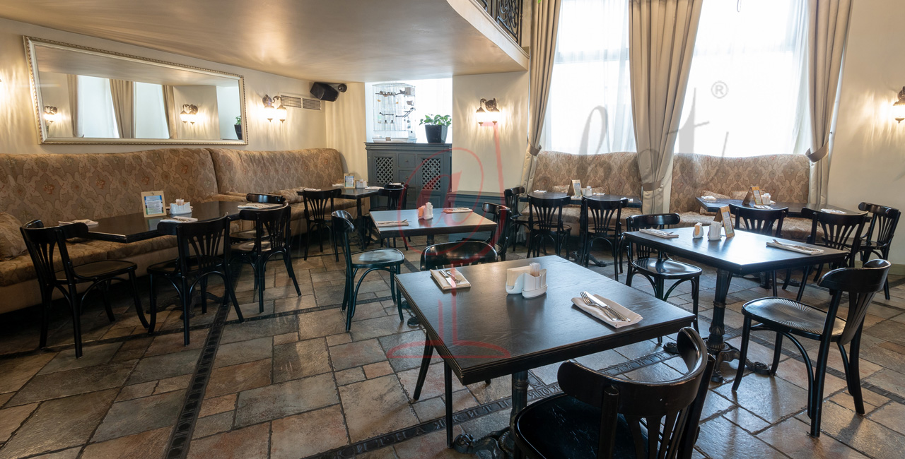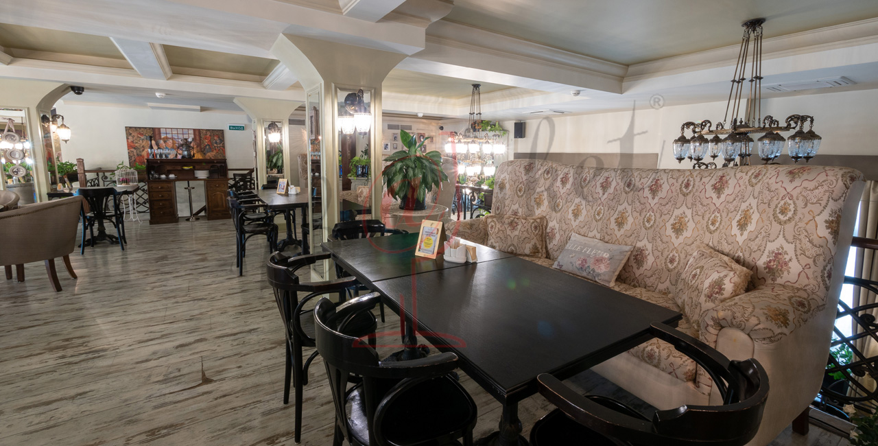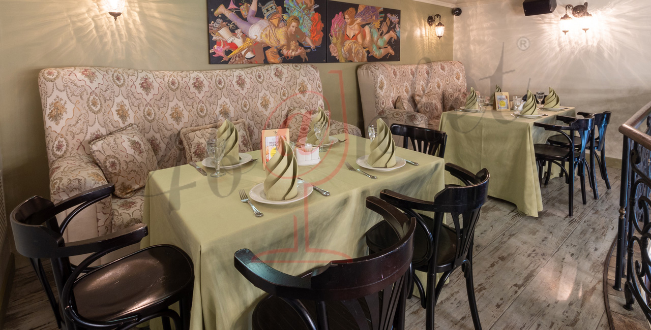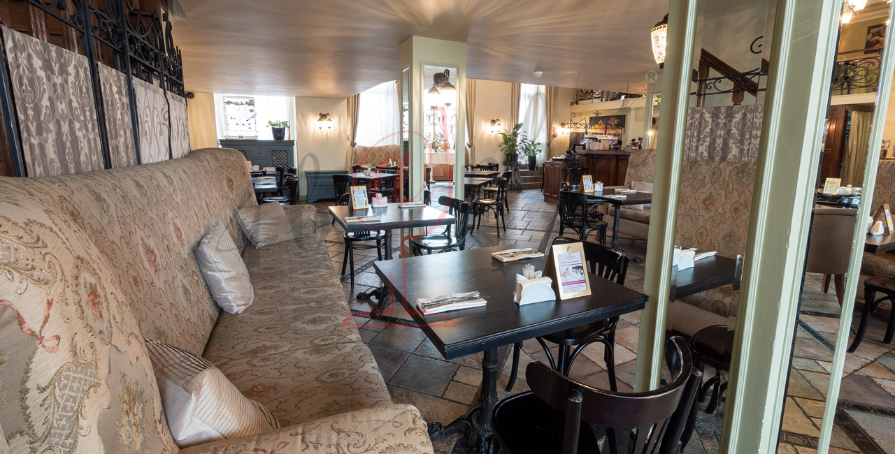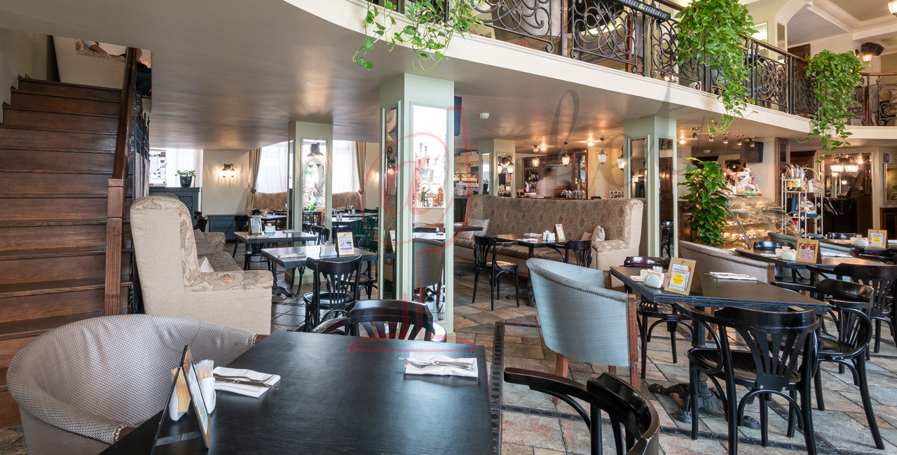 Почувствуйте дух аристократической атмосферы: высокие потолки с лепниной, закрашенные темной масляной краской, кованые перила, большие люстры с хрустальными подвесками и старинное фортепиано со своей загадочной историей. Классические столики соседствуют со стильными диванами.