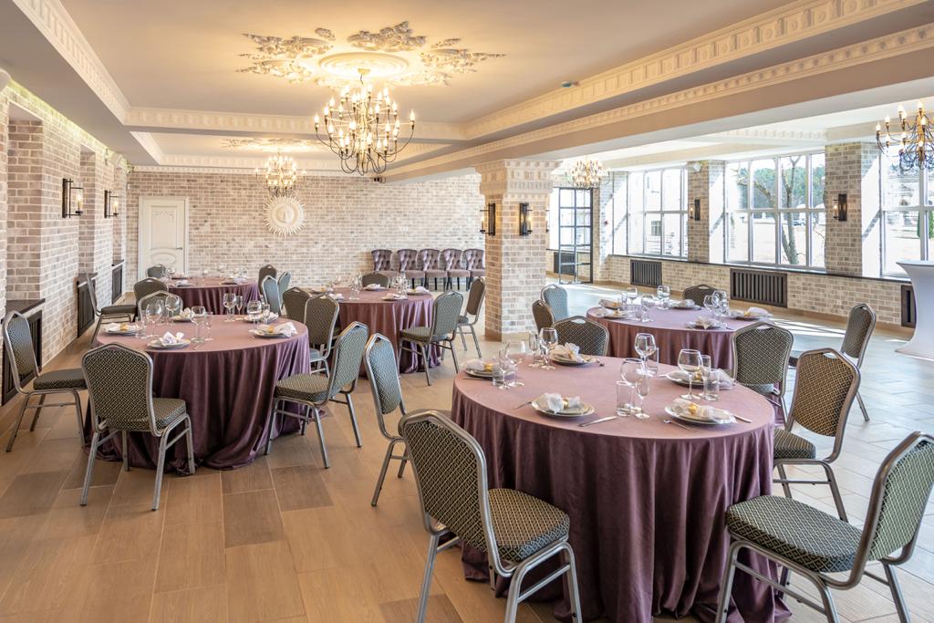 Большие панорамные окна открывают вид на архитектурный ансамбль усадьбы Голицыных, увенчанный неповторимой и таинственной церковью Знамение.