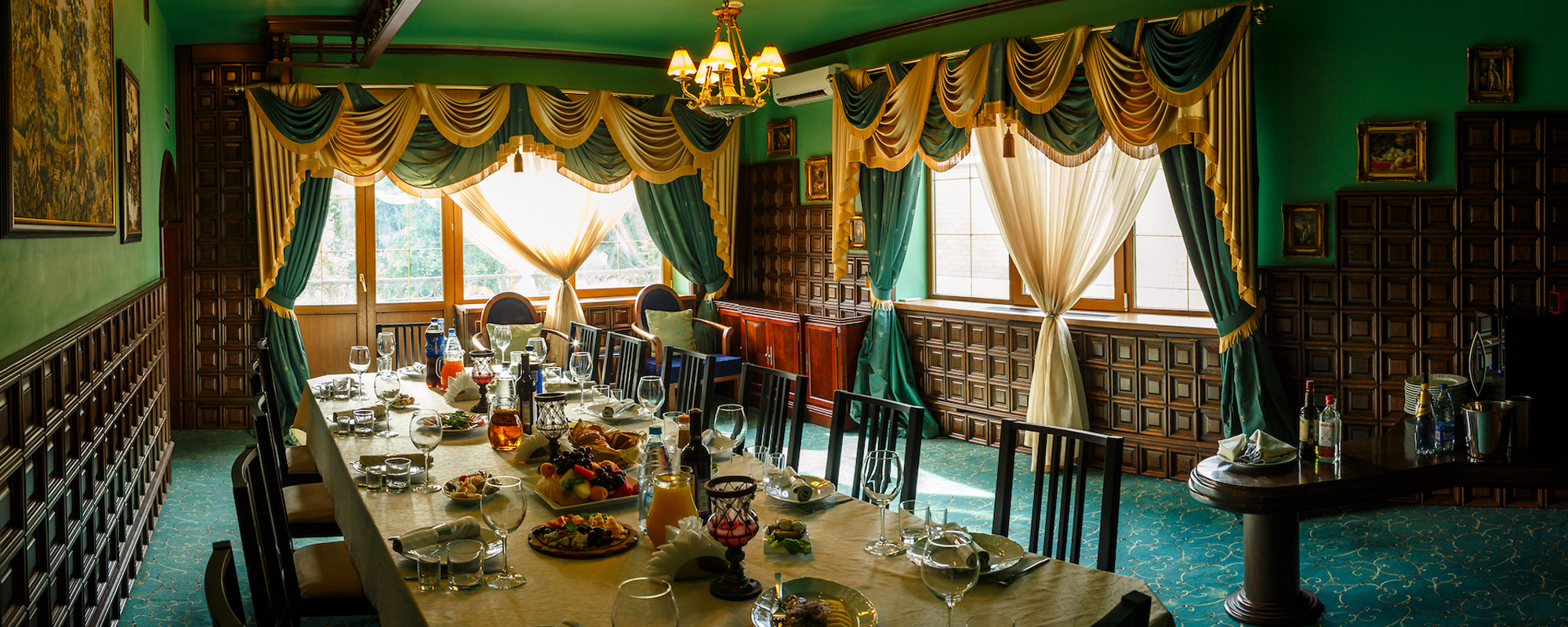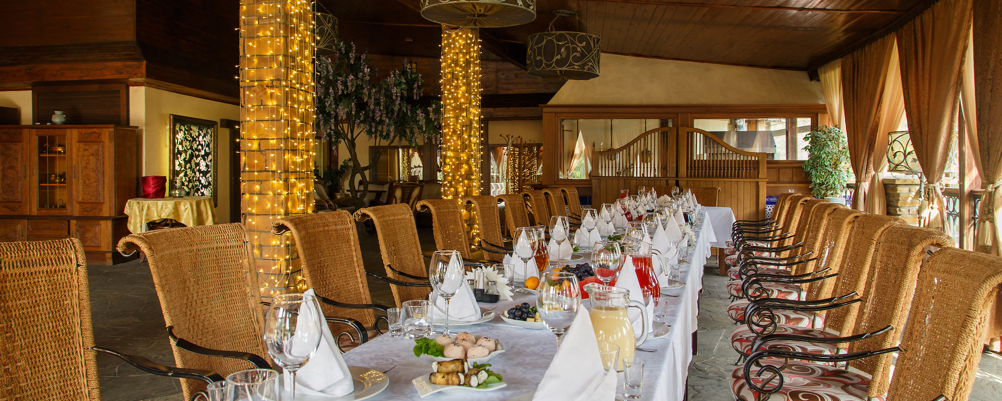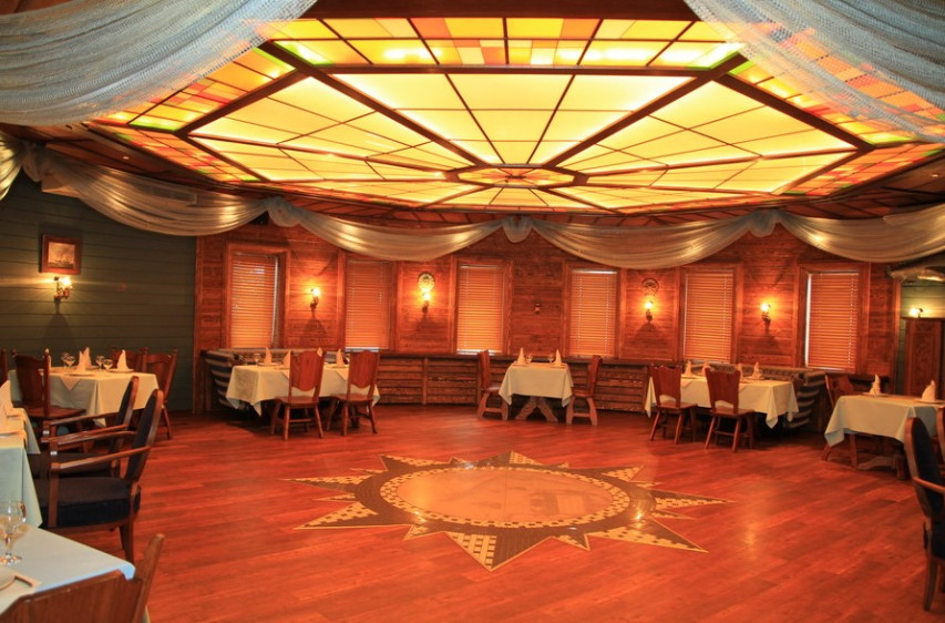 Едва переступив порог, уже в холле вы оказываетесь в атмосфере тепла и уюта. Изысканный интерьер с изменяемым освещением поможет создать настроение романтического вечера или наоборот веселого праздника, так как просторные залы ресторана идеальны для проведения банкетов и корпоративных мероприятий.