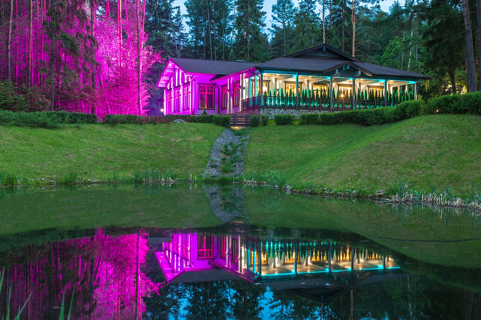 Уютный ресторан, занимает всё отдельно стоящее здание с прилегающей территорией, что обеспечивает дополнительную приватность. Расположен на живописном берегу каскадных прудов посреди хвойного леса, в одном из самых экологически благоприятных мест ближайшего Подмосковья. Интерьер ресторана не оставит равнодушным даже самых взыскательных гостей, так как обладает неповторимым дизайном, выполнен из качественных материалов с применением оригинальных декоративных решений. В ресторане Вы почувствуете особую атмосферу комфорта и роскоши.