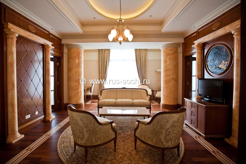 «Русь» сегодня – это уютные номера бизнес-класса и великолепные апартаменты класса Luxe, оздоровительный центр с уникальной лечебной базой и роскошные программы Wellness&SPA; оснащенные самым современным оборудованием залы для проведения государственных мероприятий и деловых встреч, международных конгрессов и банкетов; прекрасно оборудованный спортивный комплекс с тренажерным залом, закрытым и открытым бассейнами с пресной и морской водой, игровыми площадками и теннисными кортами с грунтовым покрытием и искусственной травой; рестораны и бары, накопившие уникальный опыт приема высоких гостей и отлично оборудованные галечные пляжи.