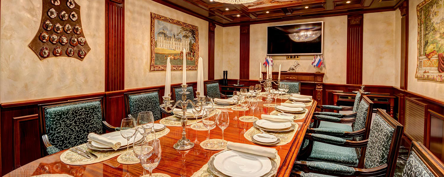 VIP-зал – изысканное место для проведения деловых встреч, дискуссий и презентаций. Камерная атмосфера создаст неповторимое времяпрепровождение, а винный погреб, который находится в самом зале за стеклом придаст особый образ для любого мероприятия.