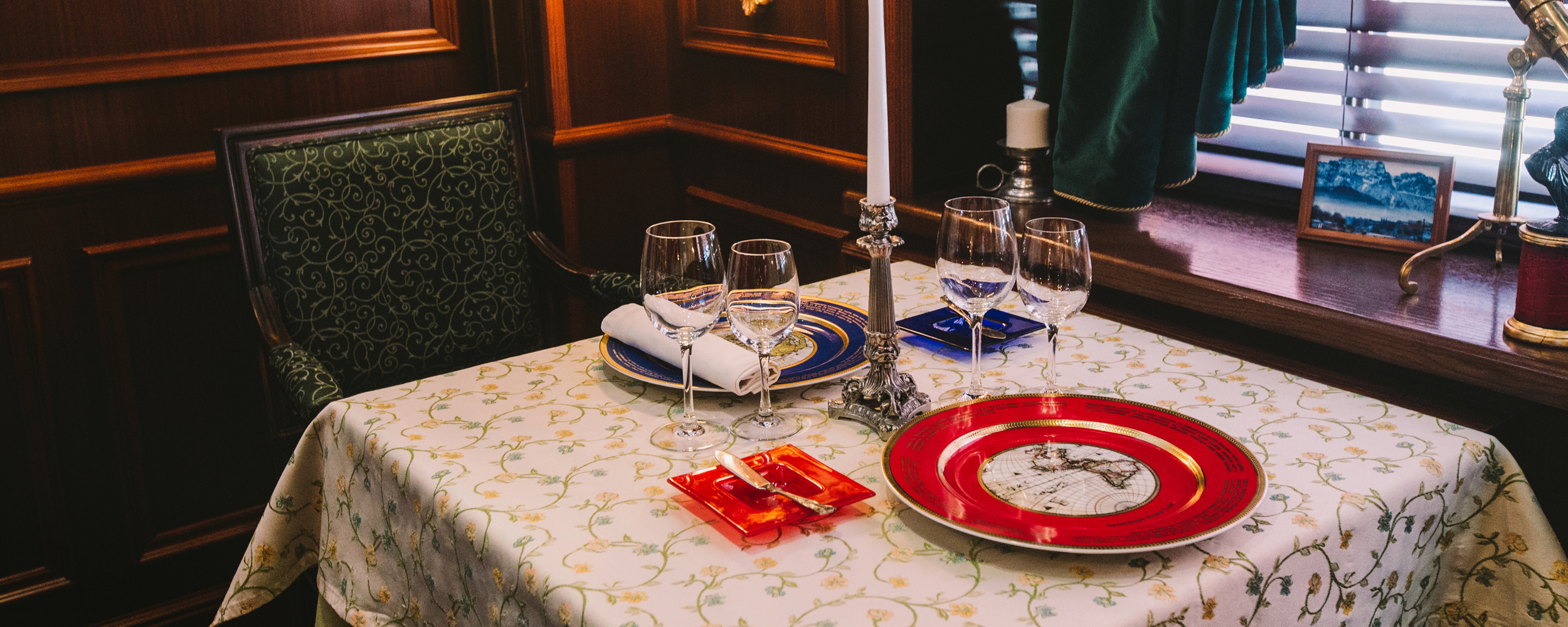 Ресторан «РГО» расположен в центре Москвы, на Лубянке выполнен в духе изысканных салонов дореволюционной России, предназначенных для встреч первых лиц государства и высокого общества. Основателей Русского Географического Общества объединяла любовь к родной земле, страсть к постижению неизведанного, и жажда путешествий. Эти чувства создателей Общества нашли свое воплощение во внутреннем убранстве ресторана.