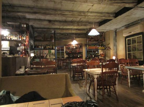 Интерьер двух залов кафе «Руставели» выполнен в стиле старинных кавказских крепостей. Аутентичная кирпичная кладка, тут и там «выныривающая» из-под розовой отделки стен, кое-где оригинальные барельефы, дополняющие собой культурную составляющую заведения – множество картин, воскрешающих в памяти полотна самого Нико Пиросмани. Резная деревянная мебель и живая зелень только дополняет уют и какую-то домашность обстановки своеобразным национальным колоритом.