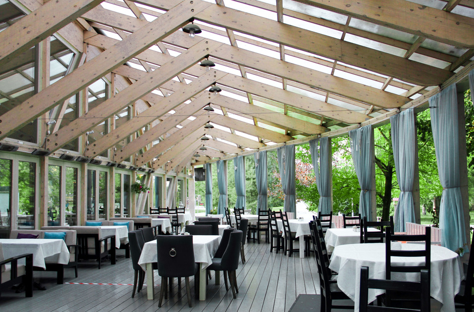 Мы находимся в парке искусств Музеон — большой ресторан в скандинавском стиле для любителей света и минимализма.