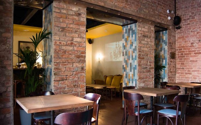 Тусовочный кафе-бар от команды «Бездельников» на Конногвардейском бульваре. Днем заведение работает в формате кафе с жизнерадостной желтой террасой, площадкой для петанка в теплое время года и демократичным меню с европейскими и авторскими блюдами. Примечательно, что накормить здесь готовы не только гостей, но и их собак: им предложат закуски и «собачье пиво». Ближе к вечеру внимание гостей обращается к барной стойке, за которой разливают коктейли, настойки и другие горячительные напитки. Кроме того, здесь отличная винная подборка. По пятницам и субботам ближе к полуночи эпицентр жизни места перемещается к диджейской кафедре. Там, на фоне высеченных в стене крестов, играют представители российской и зарубежной электронной сцены. Интерьер кафе-бара оформлен в колониальном стиле.