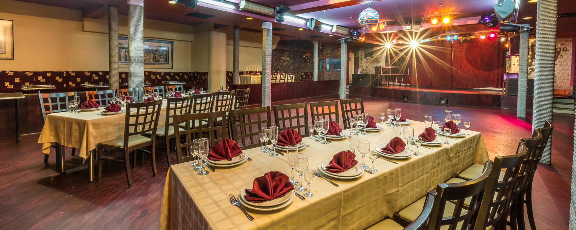 Это потрясающее и уютное место, содержащее в себе 6 банкетных залов и летнюю веранду, рассадкой от 10 до 400 человек и фуршетом до 700 человек. Это позволяет проводить любые мероприятия от романтических ужинов для влюбленных пар, до проведения свадеб, юбилеев и больших корпоративов.