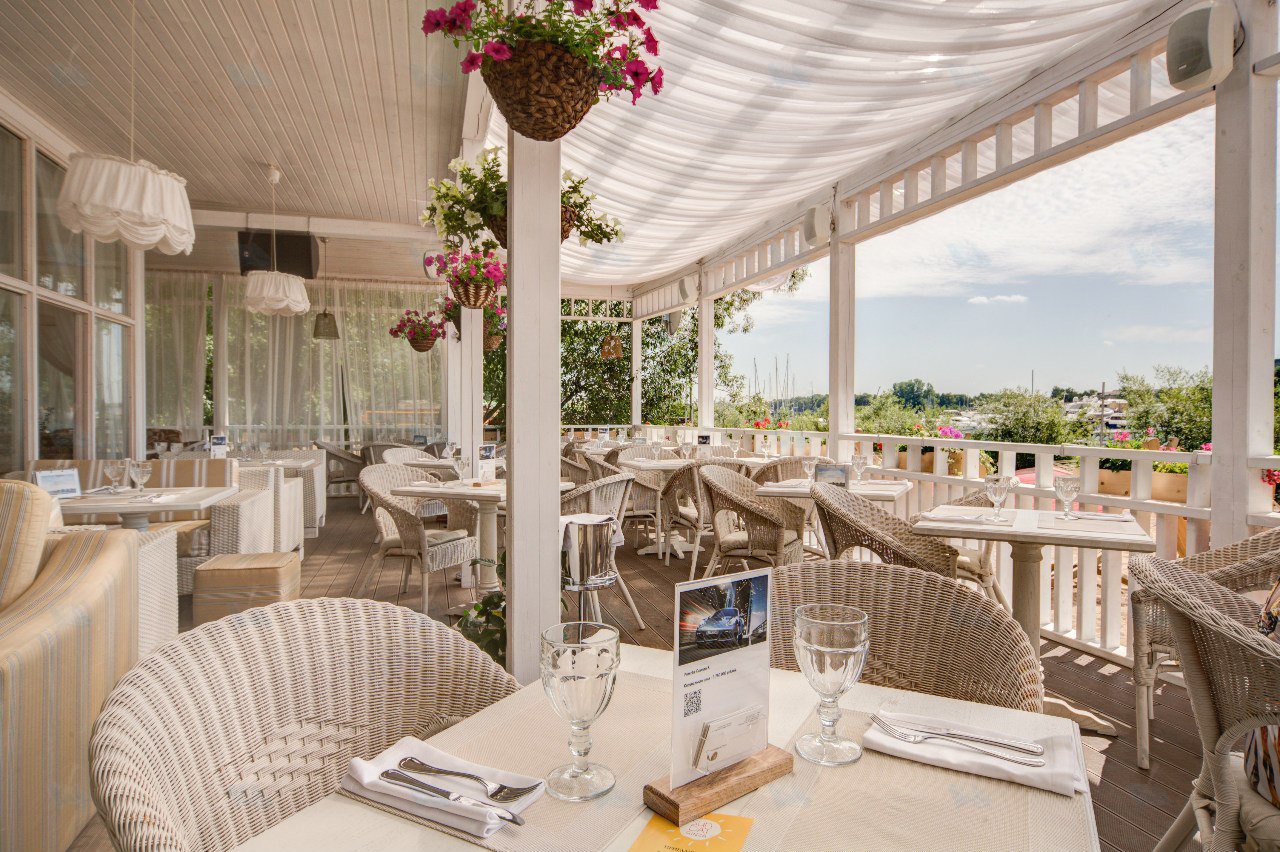 Расположенный на Крестовском острове SunDay(Ginza Project) представляет собой одно из заведений загородного формата. Большой деревянный зал, в интерьере которого преобладают воздушно-светлые морские цвета, с интересными, цепляющими глаза нюансами вроде разноцветных кувшинчиков и горшочков, «вделанных» в стену ресторана, и открытой террасой с чудесным видом на воду – даже ради этого сюда стоит приехать.