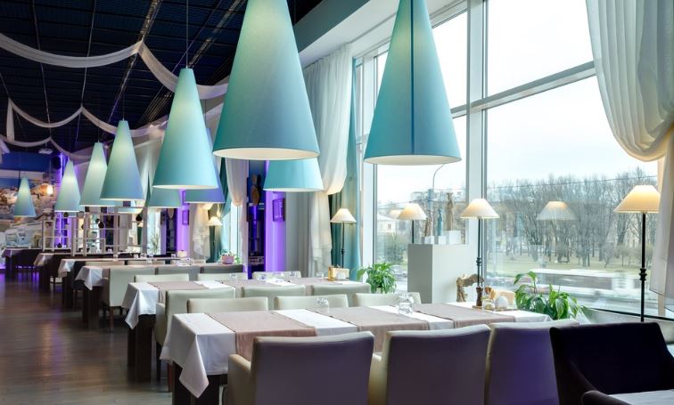 Интерьер ресторана передает колорит Балканского полуострова. Двухъярусное помещение заполнено светом благодаря большим панорамным окнам и стеклянному просвету над центральной частью основного зала. В интерьере сочетаются сдержанный скандинавский минимализм и средиземноморский стиль. Воздушное пространство между первым и вторым ярусами занимают живые цветы, которые напоминают висячие сады Семирамиды. Стены украшены медальонами с изображениями греческих богов, а столы застелены традиционными льняными скатертями с вышитыми вручную гранатовыми узорами.