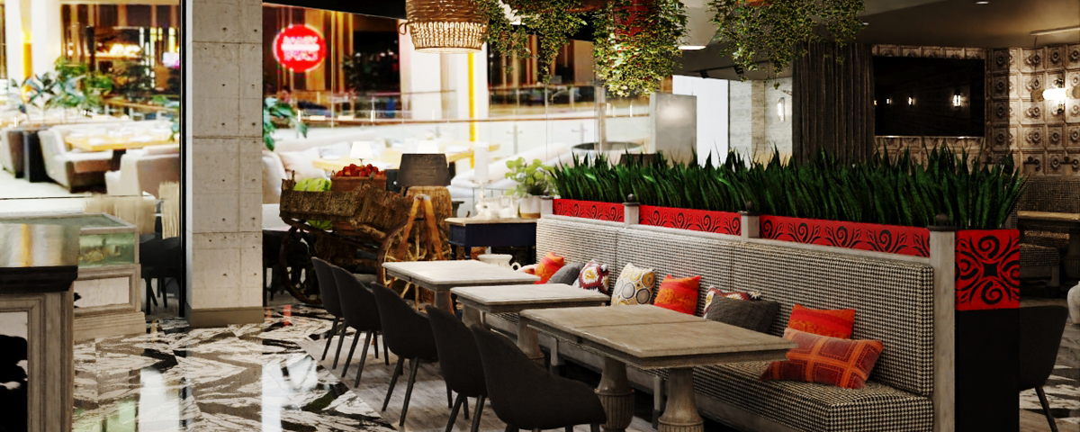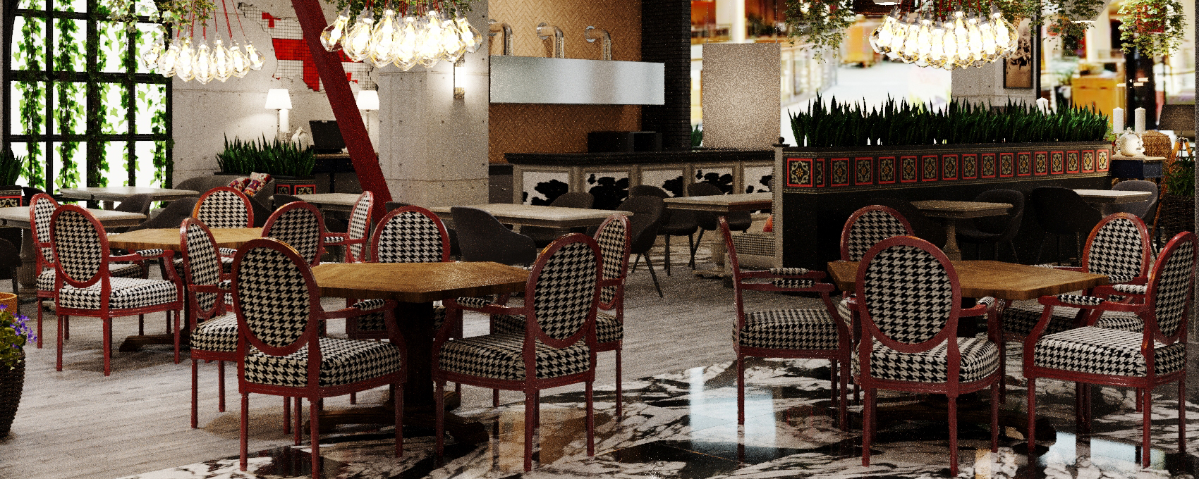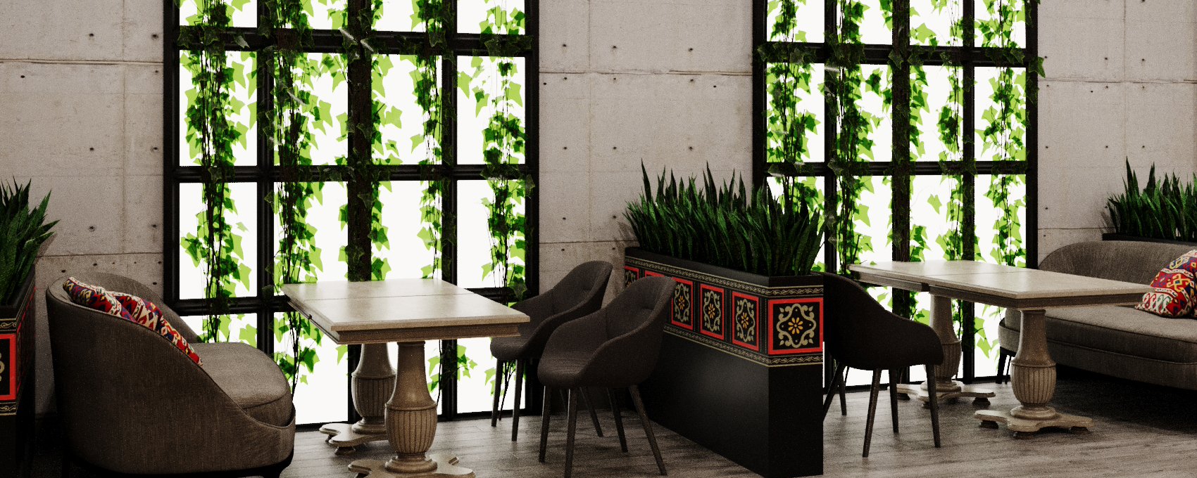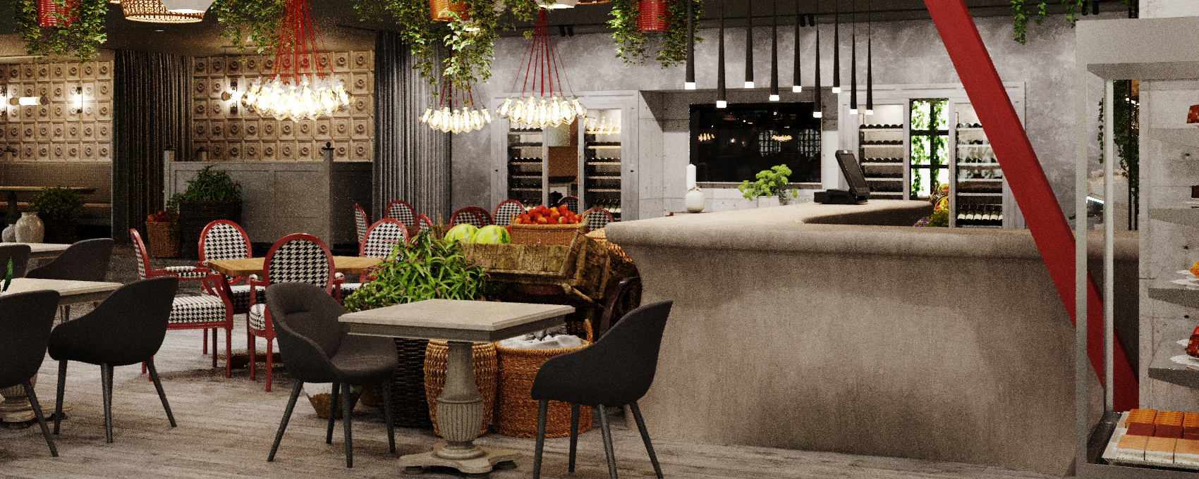 Уютный зал, трансформер, любая конфигурация по выставлению столов, вип зал на 16 человек, мягкое теплое освещение, множество зелени и виноградной лозы, люстры из корзин, барная стойка с изображением традиционного грузинского застолья.