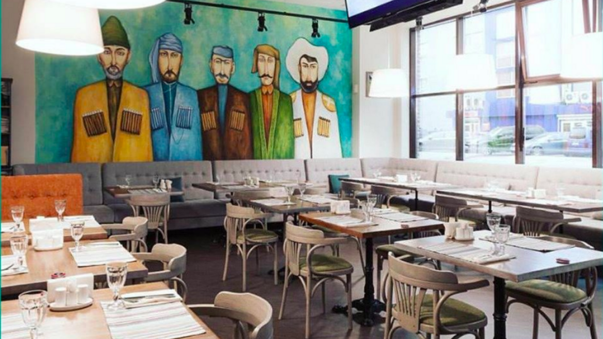 «Венахи» в переводе с грузинского означает "виноградник" - этот концепт заложен во всем оформлении интерьера ресторана: коричневый пол, массивные колонны с расписанными профессиональными художниками стволами, листья виноградной лозы под потолком…