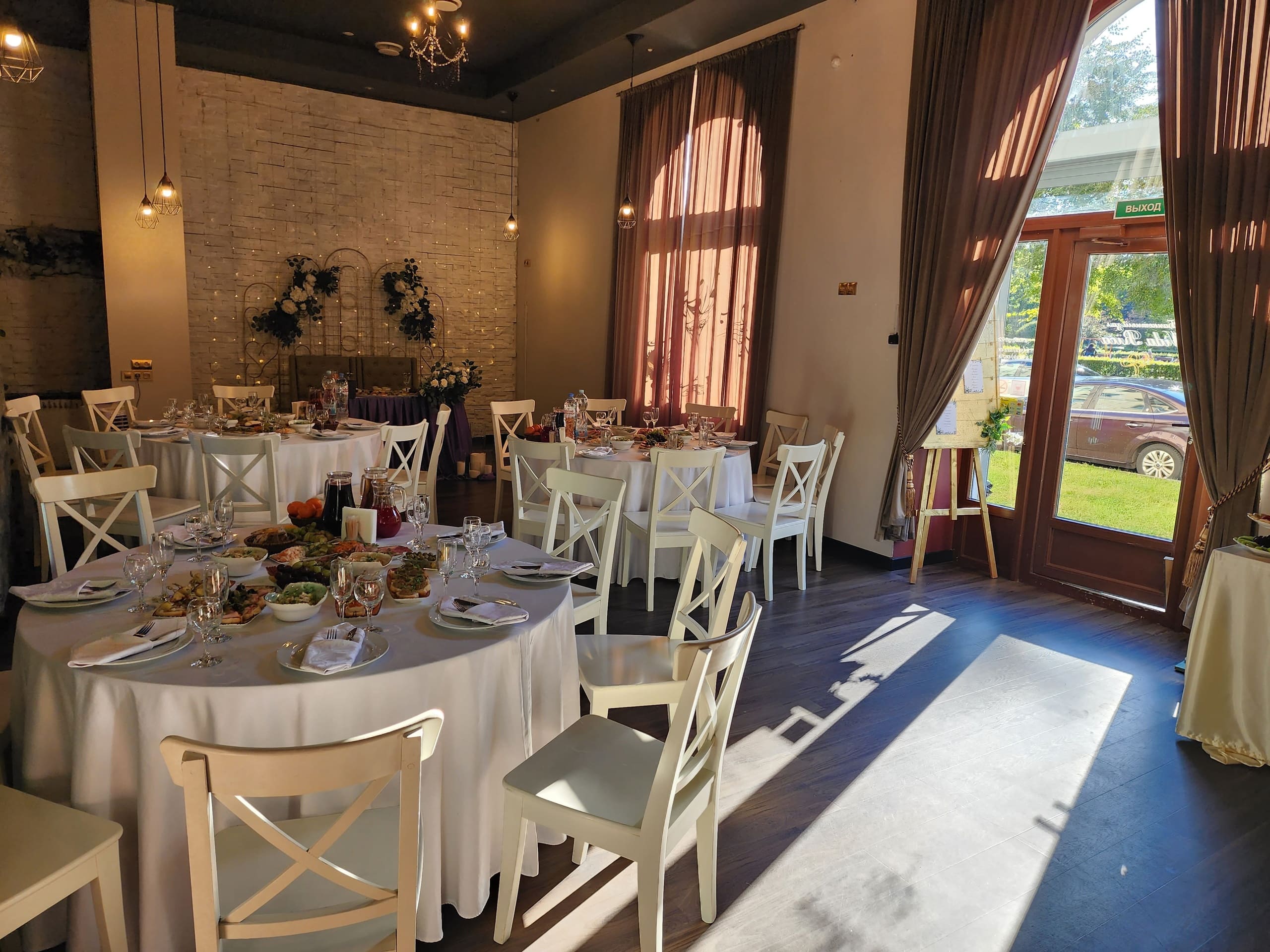 - Выездная регистрация прямо в банкетном зале и в красивом саду перед банкетном залом;